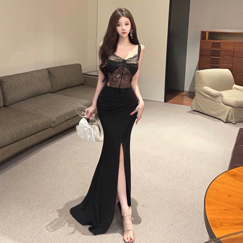Klänningen har en lång kjol och en V-halsringning som ger en smickrande silhuett. Den är idealisk för både festliga tillfällen och avslappnade sammankomster, vilket gör den till ett mångsidigt tillskott i din garderob.