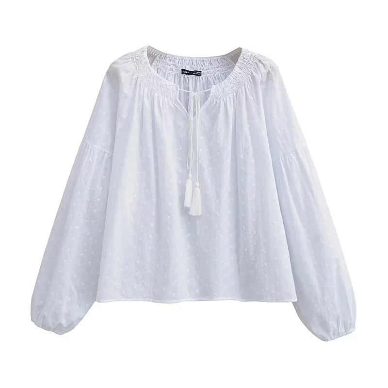 Kvinnors Långärmad Blus Med Elegant Detalj