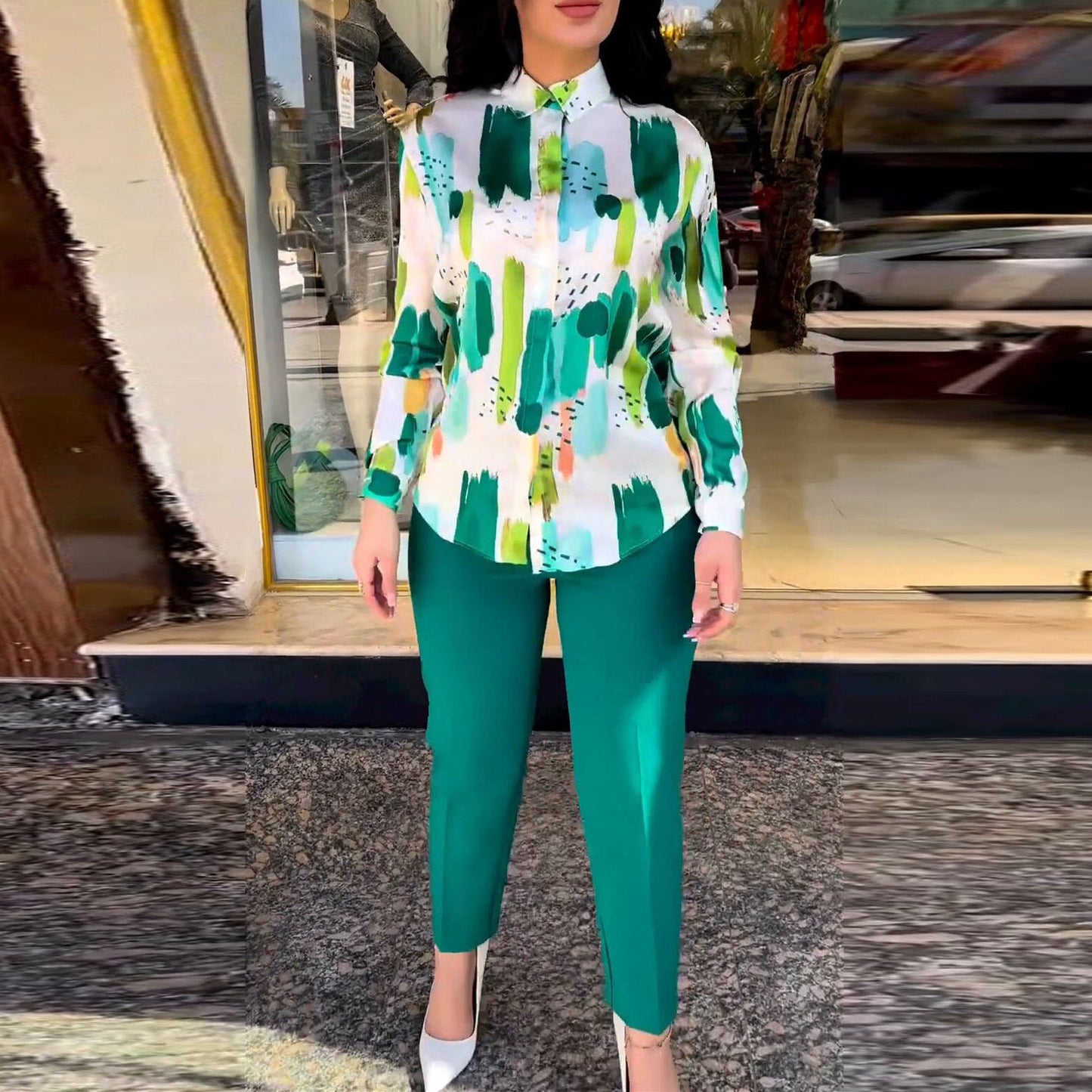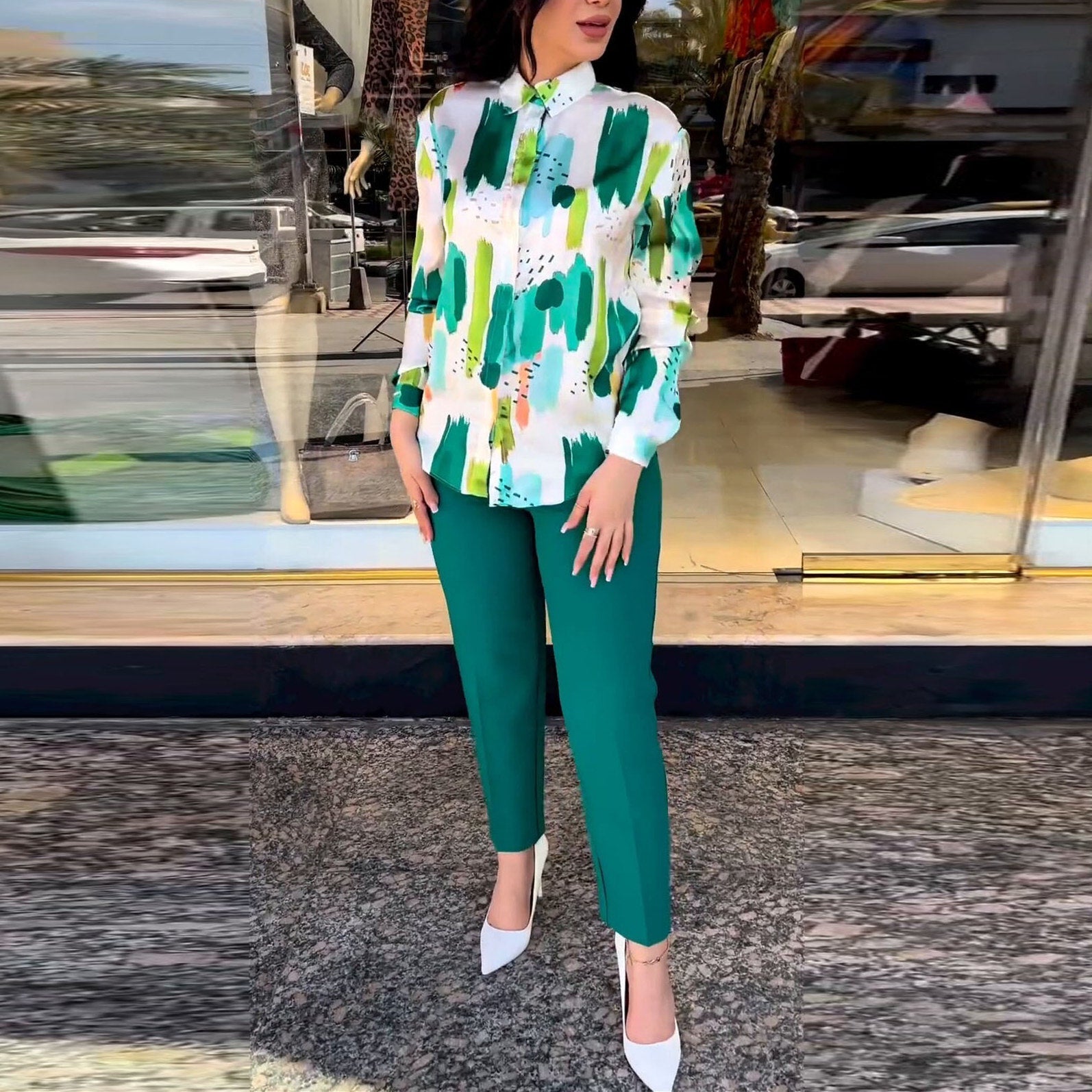 Långärmad Skjorta och Hög Midja Byxor för Kvinnor