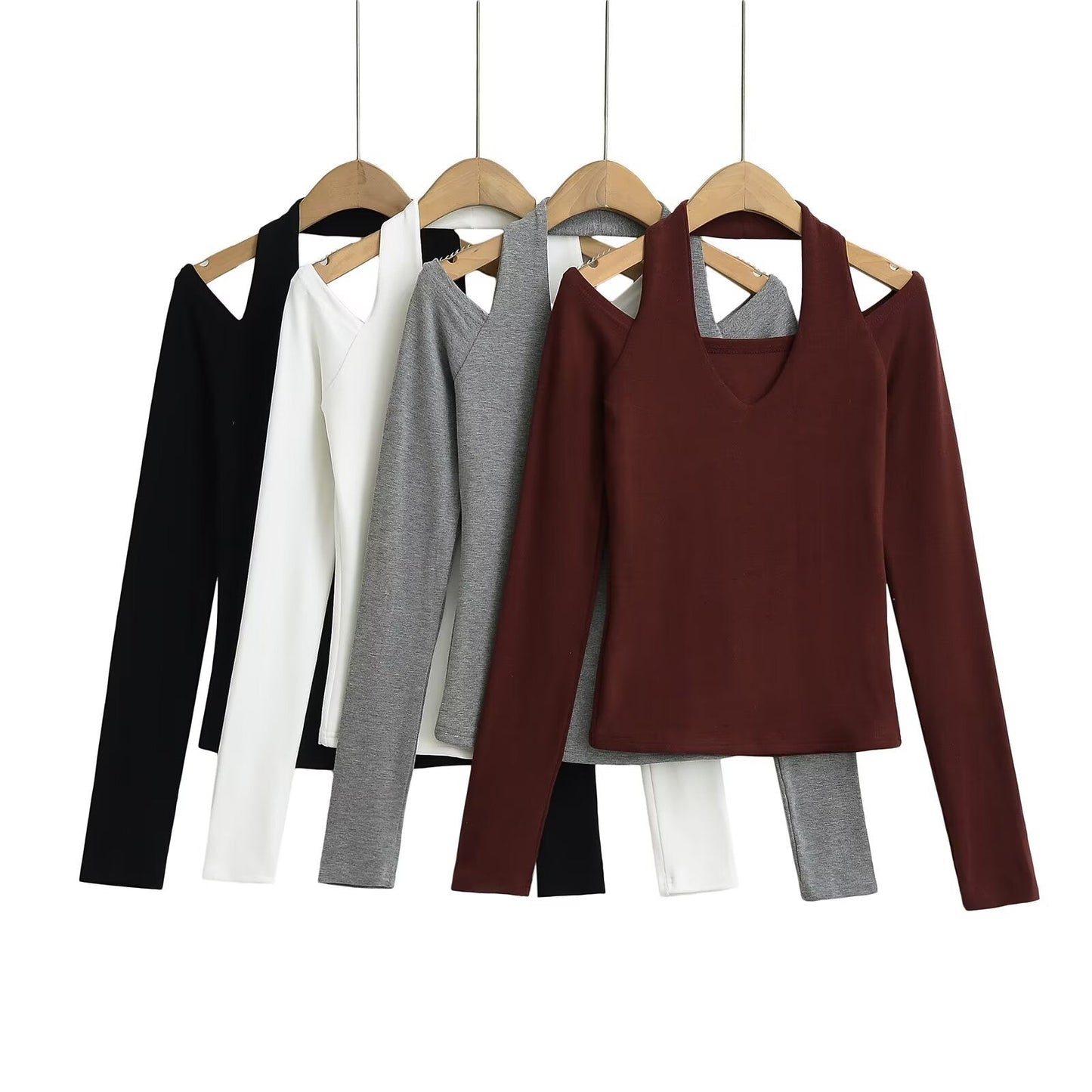 Upplev en perfekt kombination av stil och komfort med vår långärmade topp. Den asymmetriska V-ringningen och de utskurna detaljerna ger en modern känsla som gör att du alltid ser fantastisk ut.
