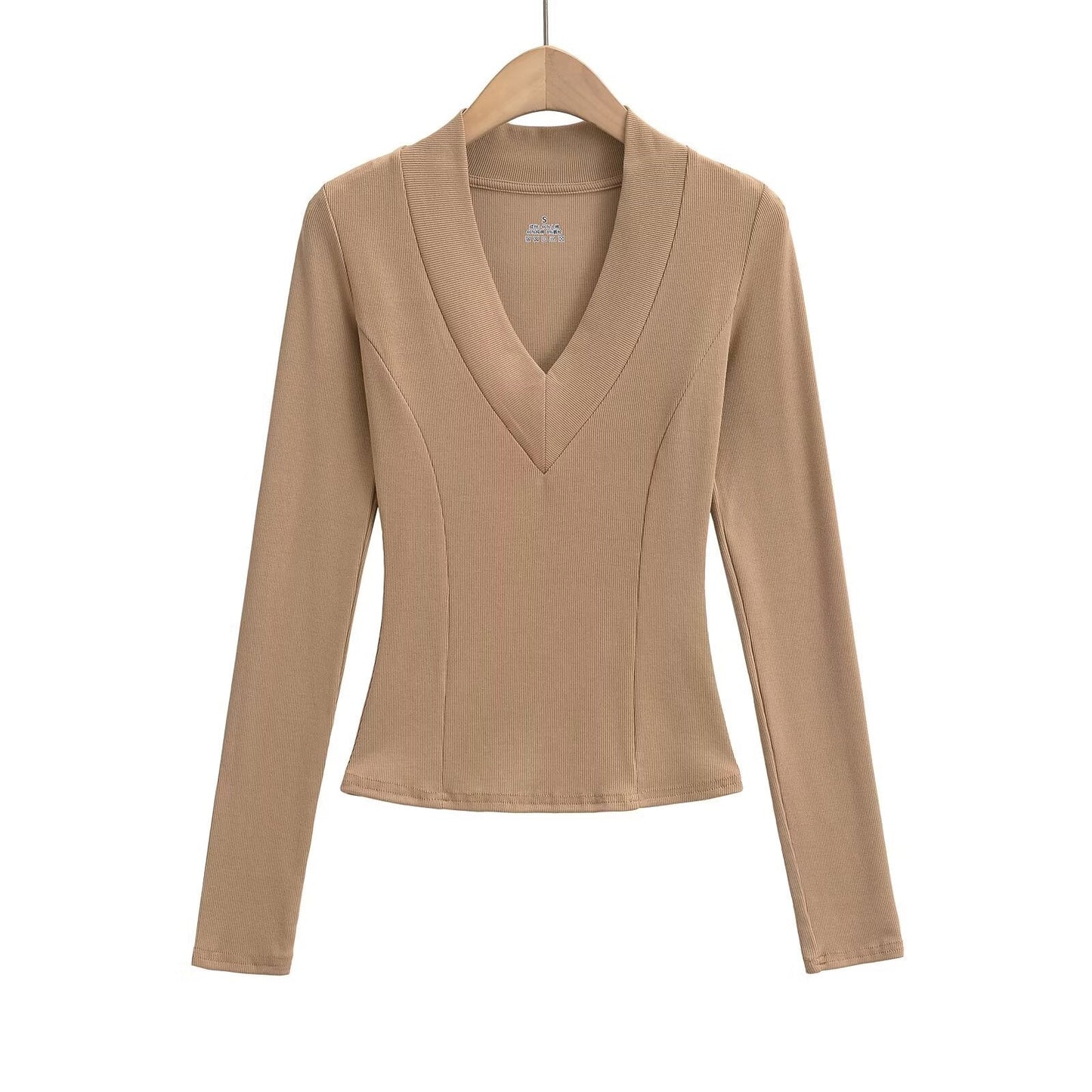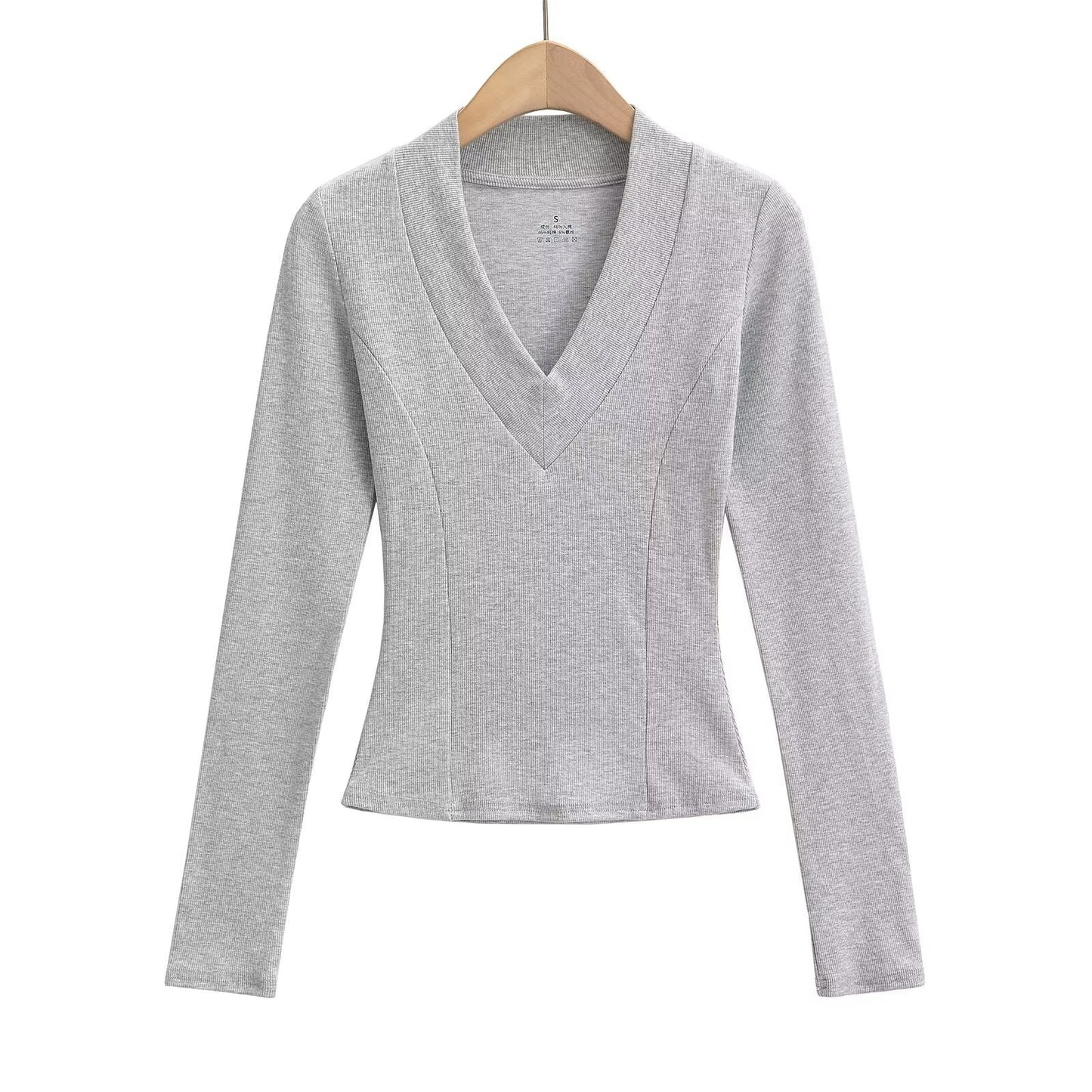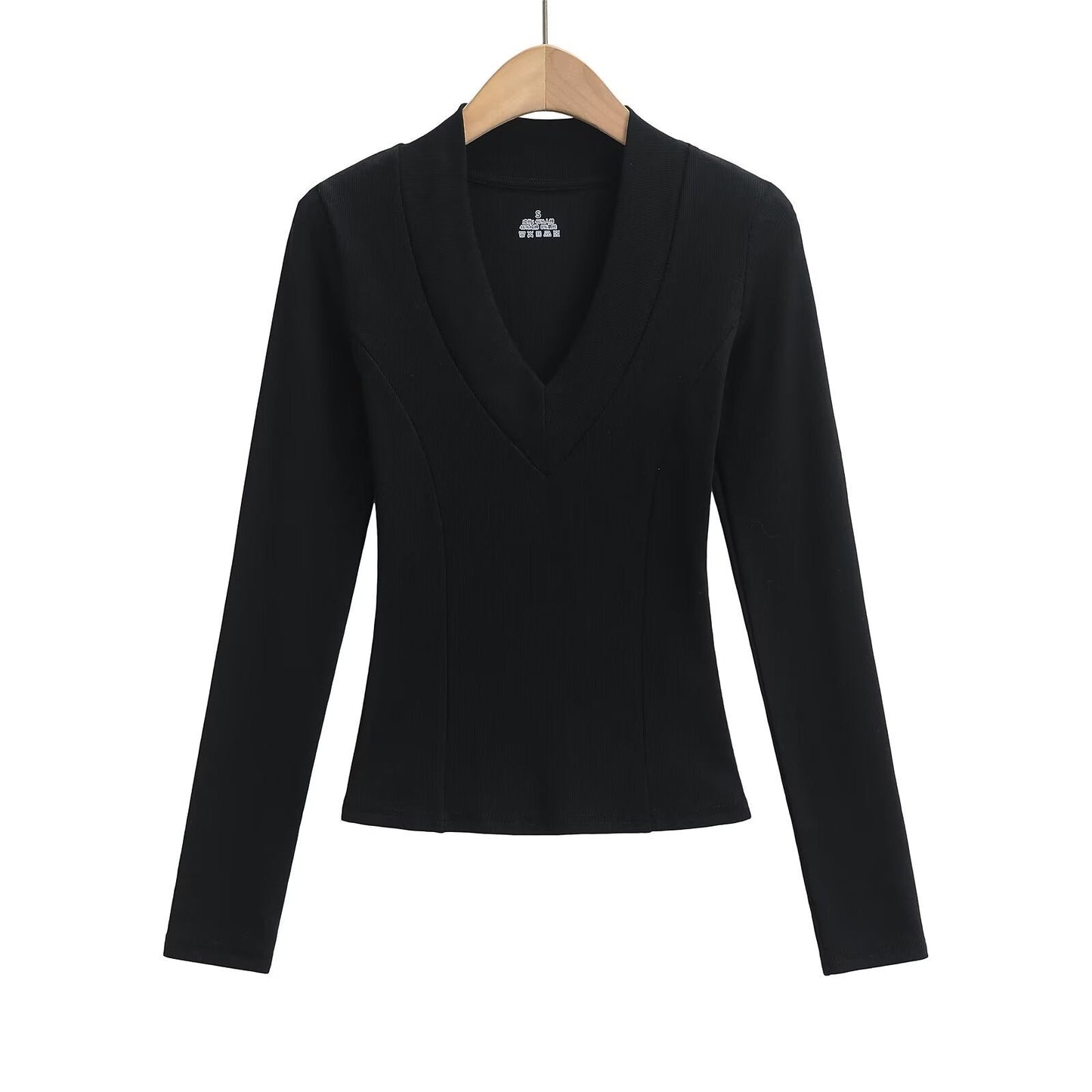 Upplev en perfekt kombination av stil och komfort med vår långärmade topp. Den djupa V-halsen och den figurnära passformen gör att du känner dig självsäker och elegant oavsett tillfälle.
