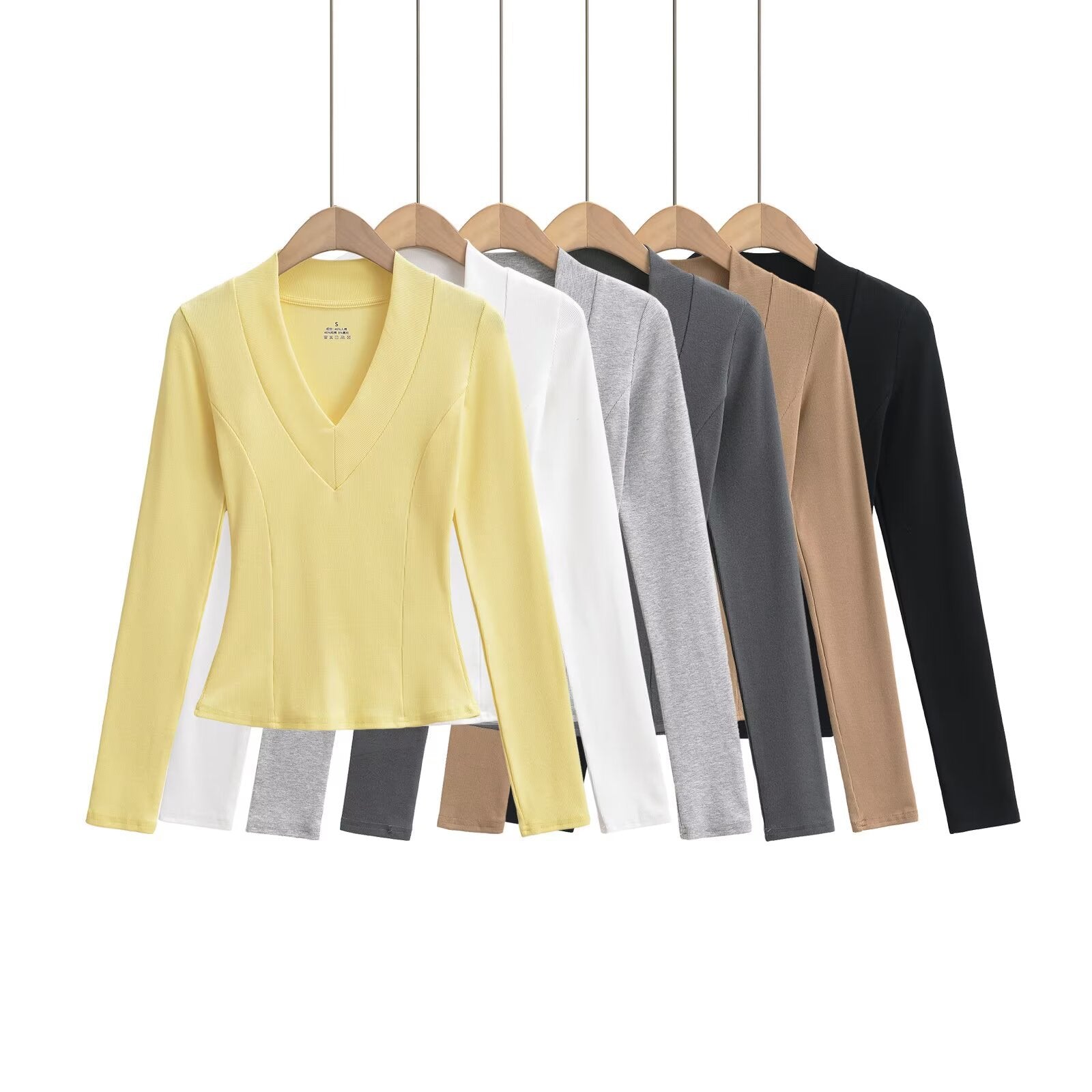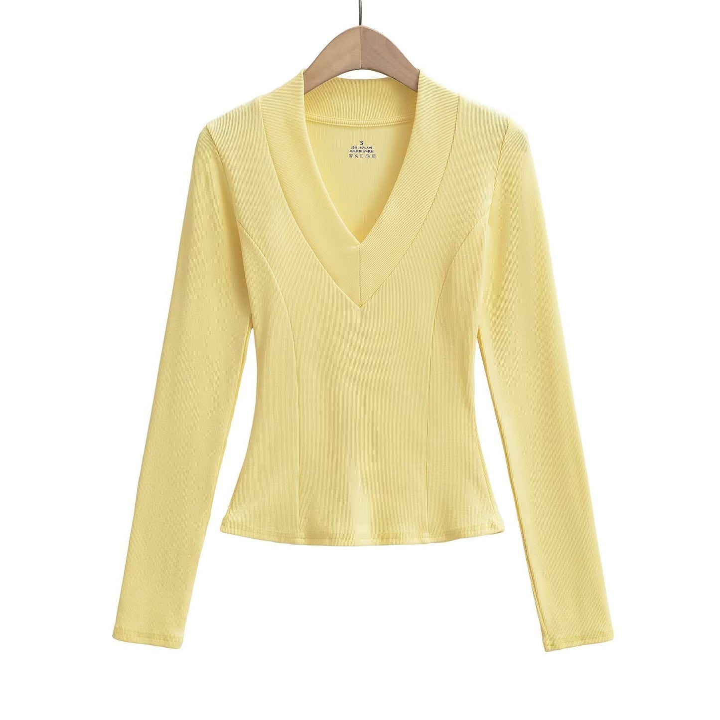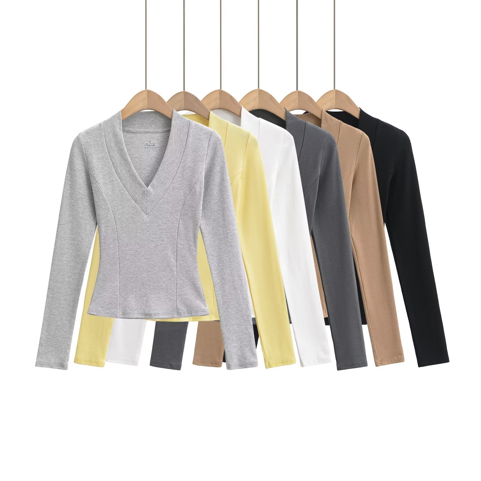 Upplev en perfekt kombination av stil och komfort med vår långärmade topp. Den djupa V-halsen och den figurnära passformen gör att du känner dig självsäker och elegant oavsett tillfälle.