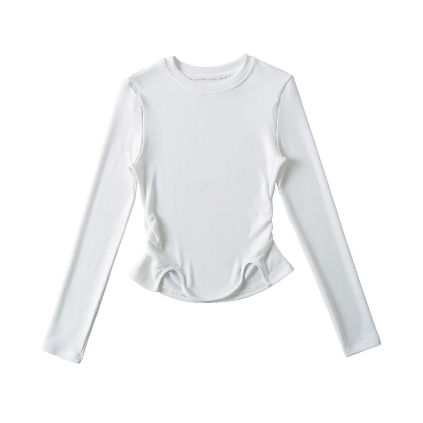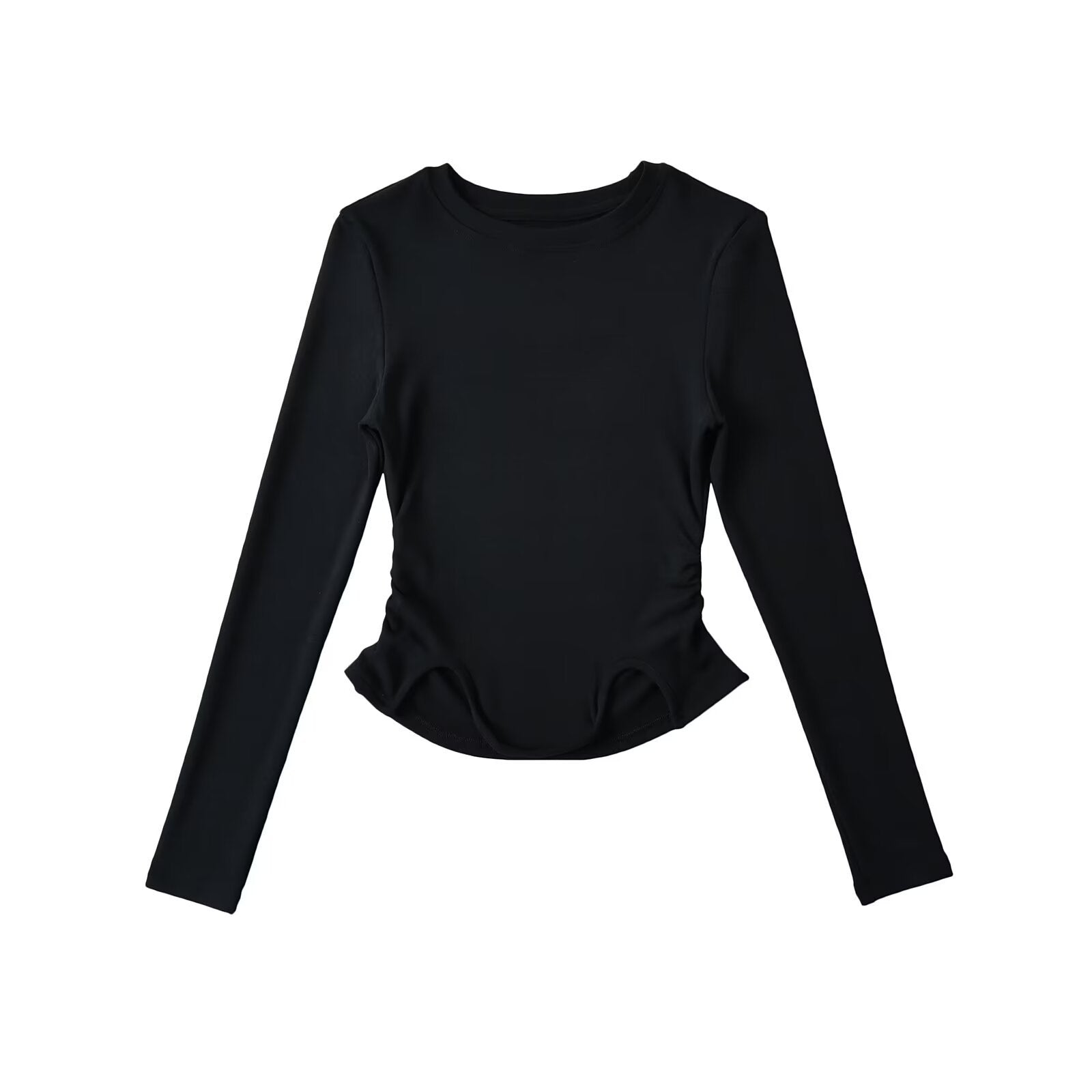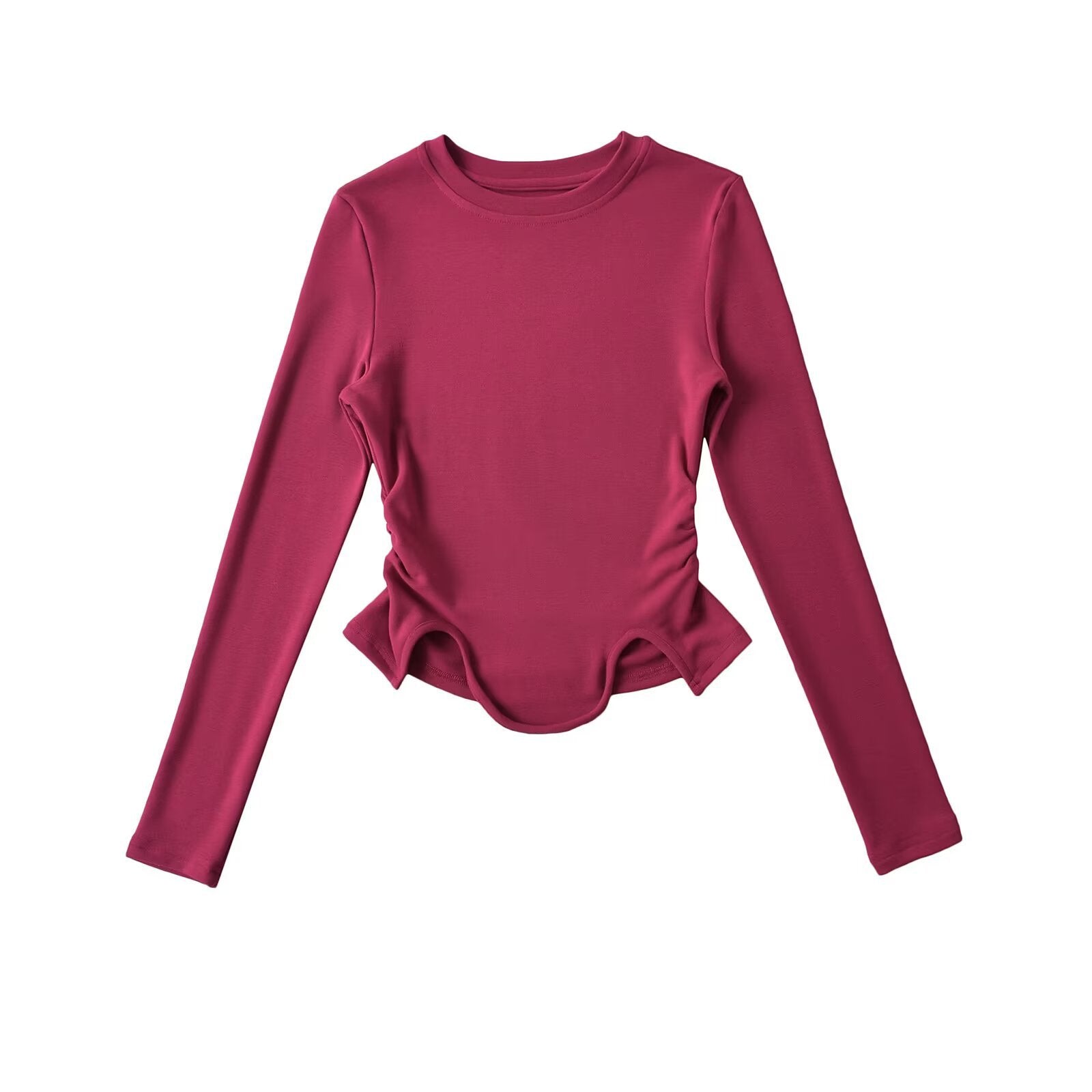Kvinnors Långärmad Topp med Ruffle Nederkant i Elastiskt Material