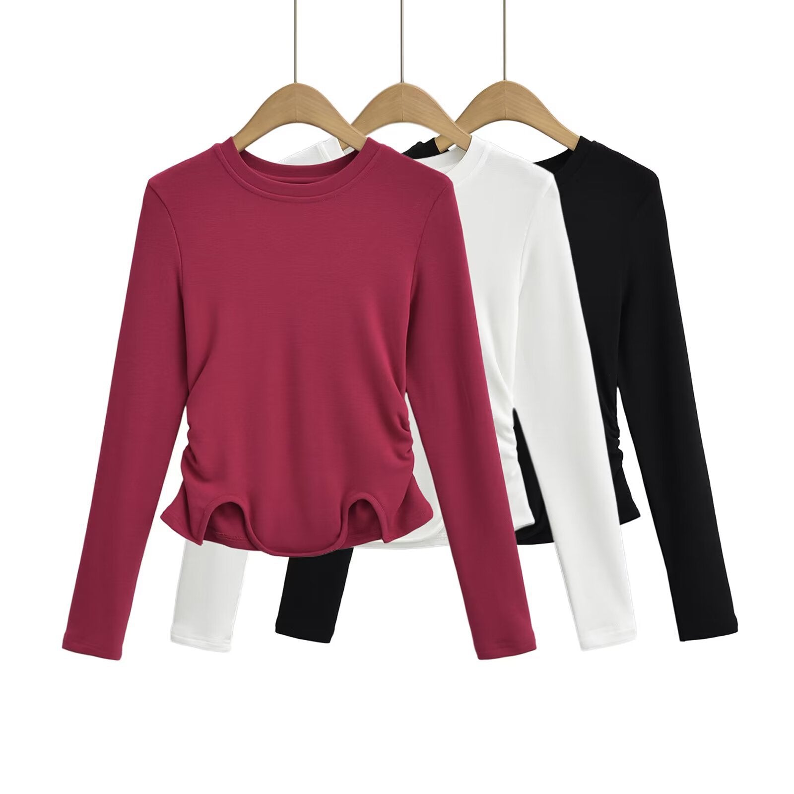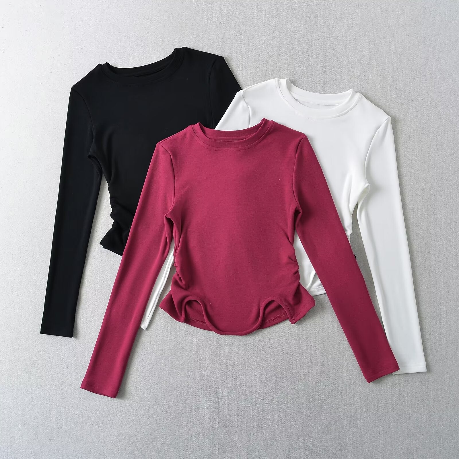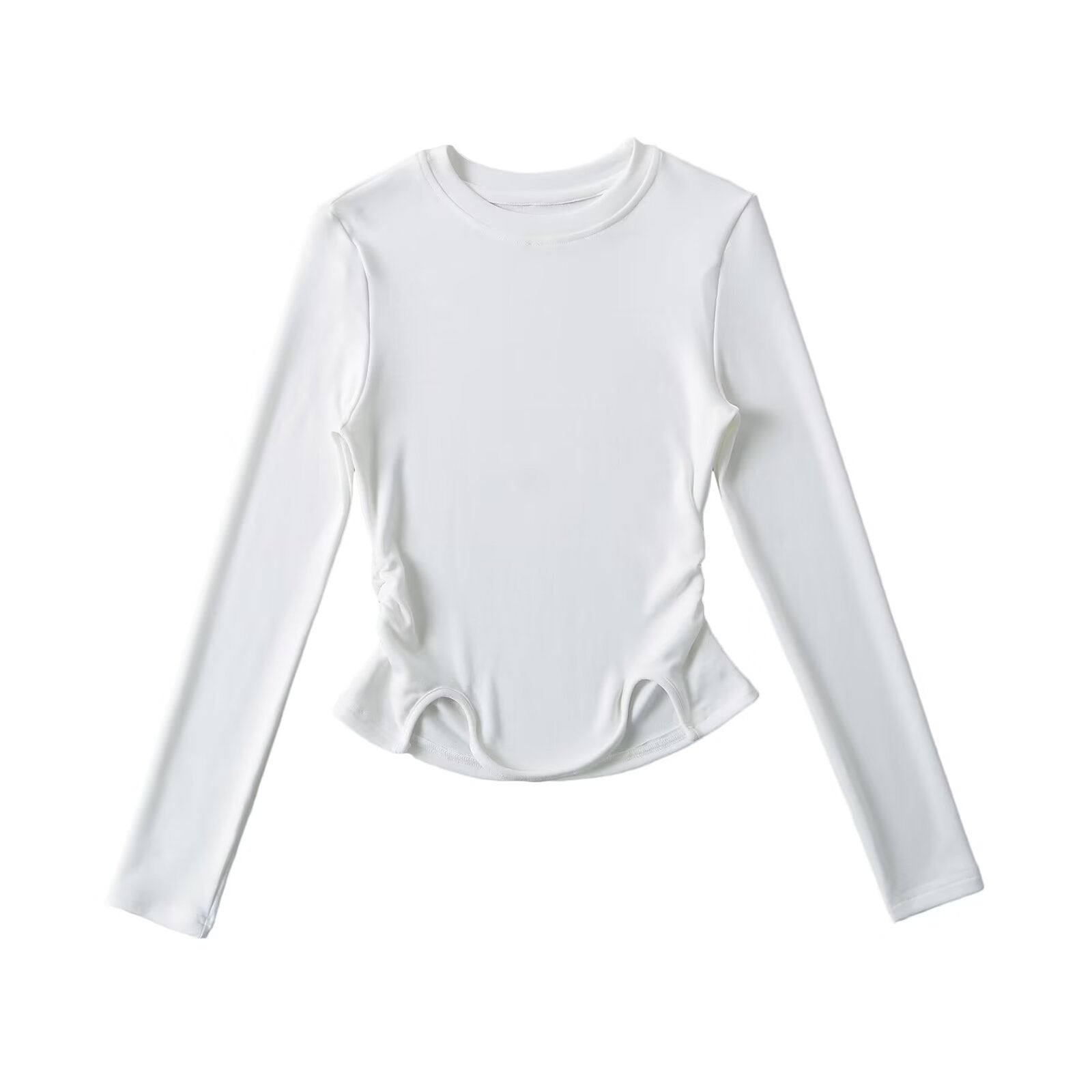 Kvinnors Långärmad Topp med Ruffle Nederkant i Elastiskt Material
