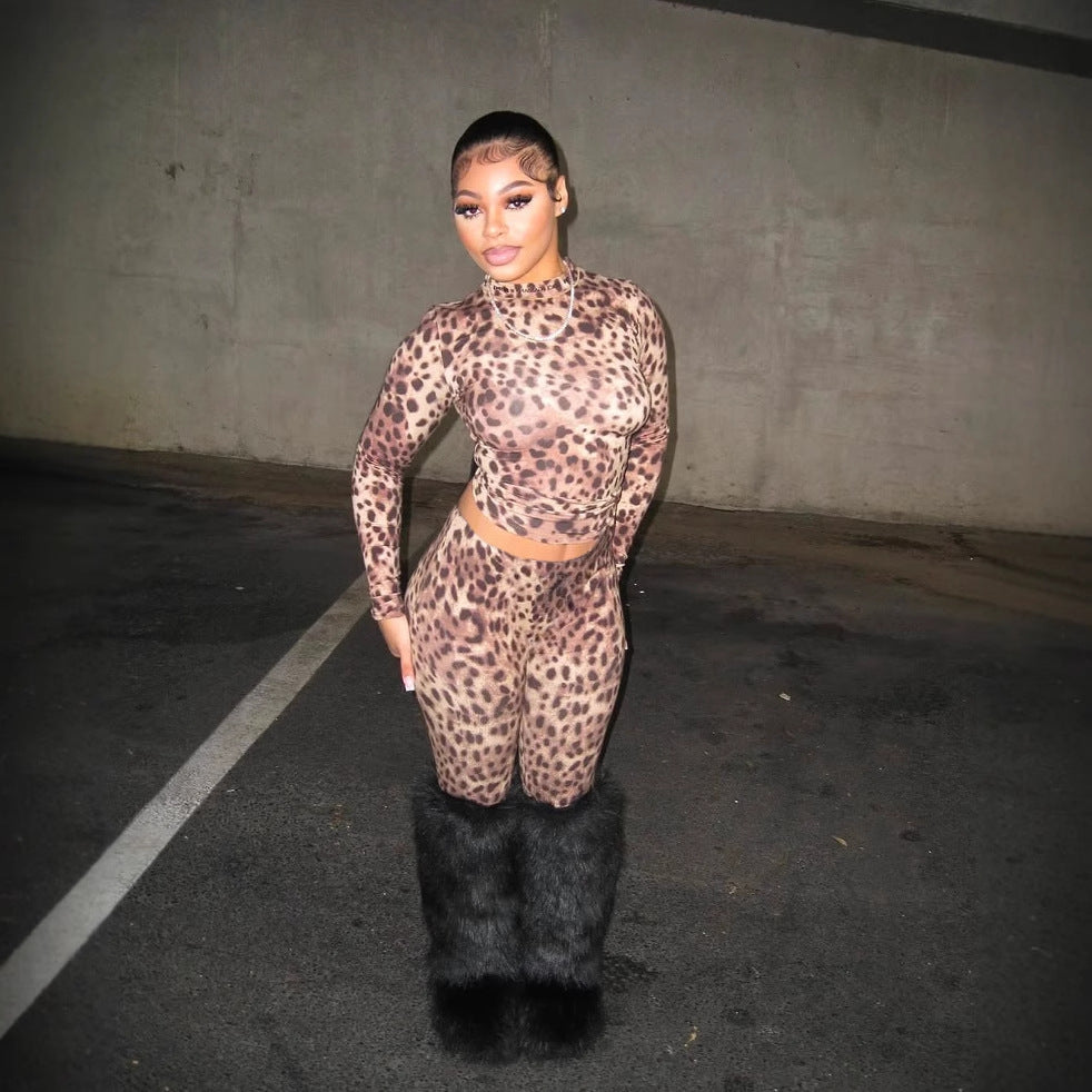 Kvinnors Långärmad Topp och Shorts Set i Elastan Streetwear