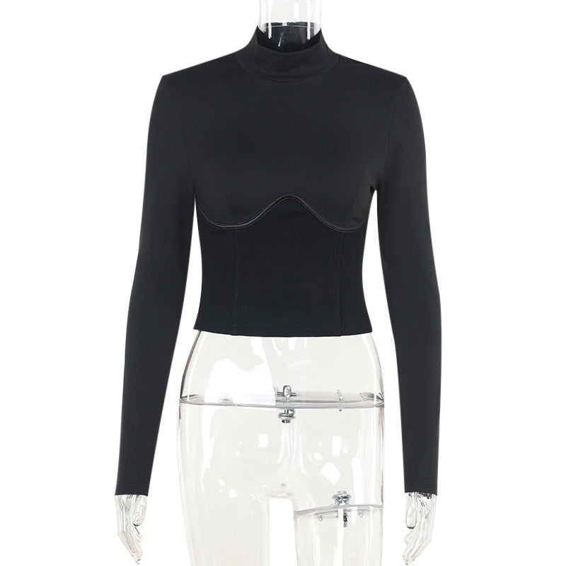 Kvinnors Långärmad Topp Stretchigt Tyg med Stand-Up Krage