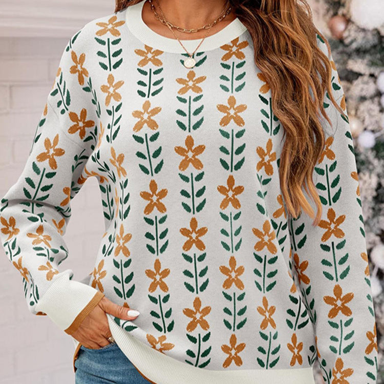 Kvinnors Långärmad Tröja Blommönster Bomullsmix