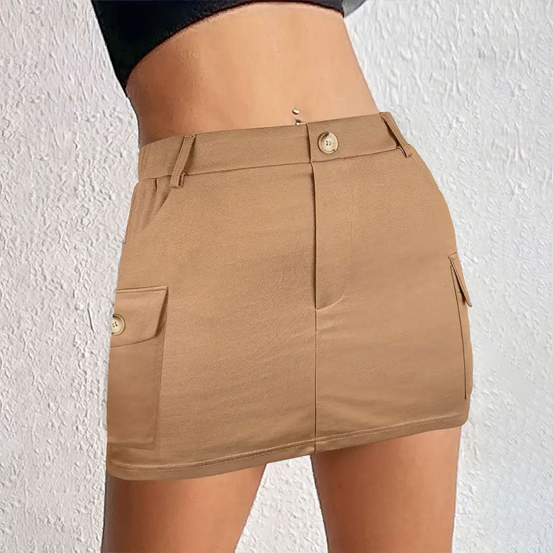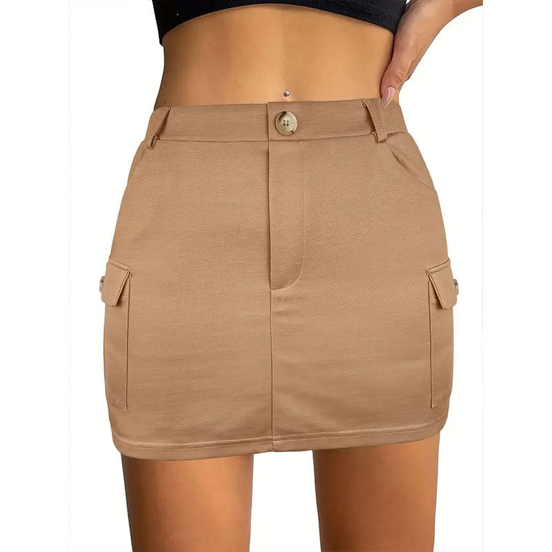 Denna lastrock har ett midjesnitt som framhäver din figur och ger dig rörelsefrihet. Med praktiska sidofickor får du plats för dina väsentligheter, vilket gör den idealisk för både vardag och speciella tillfällen. Tillverkad av elastiskt tyg, erbjuder den både komfort och hållbarhet, vilket gör den till ett utmärkt val för modemedvetna kvinnor.