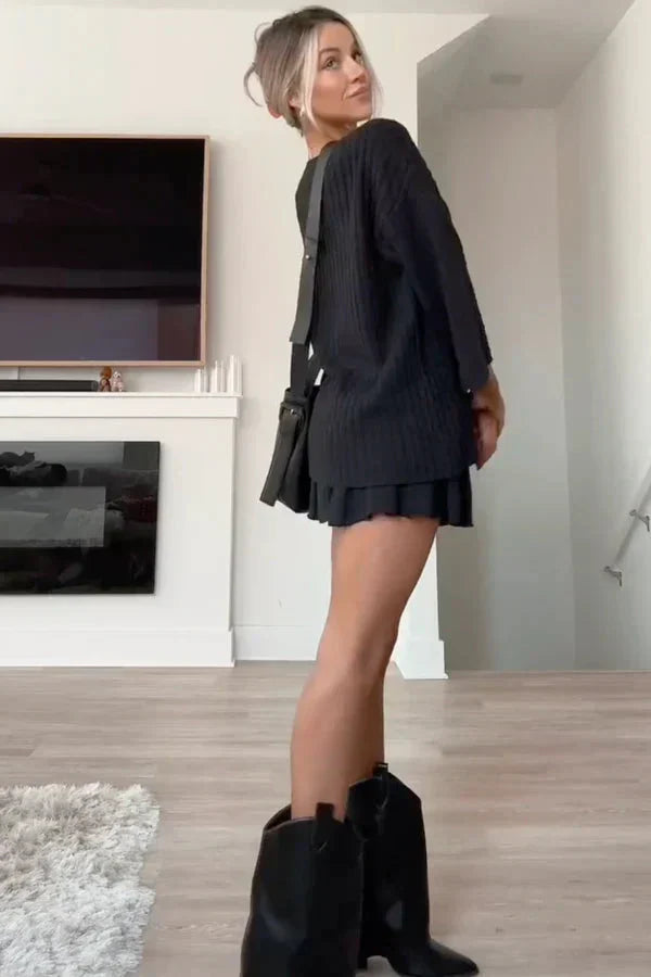 Setet innehåller en stor tröja med breda ärmar och en vikkjol som passar utmärkt för alla säsonger. Den mjuka bomullspolyesterblandningen ger en behaglig känsla mot huden och en optimal passform, vilket gör den idealisk för både avslappnade dagar och mer stiliga utflykter.