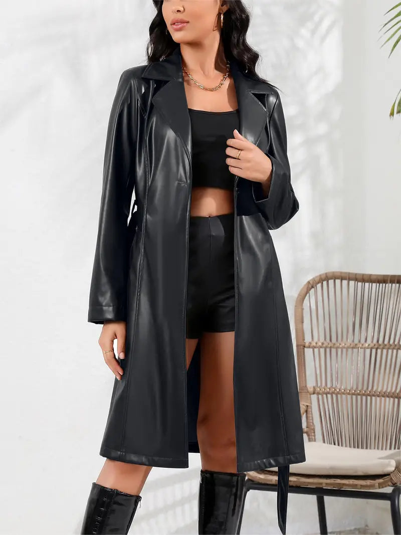 Kvinnors Medellång PU Läderjacka Elegant Design