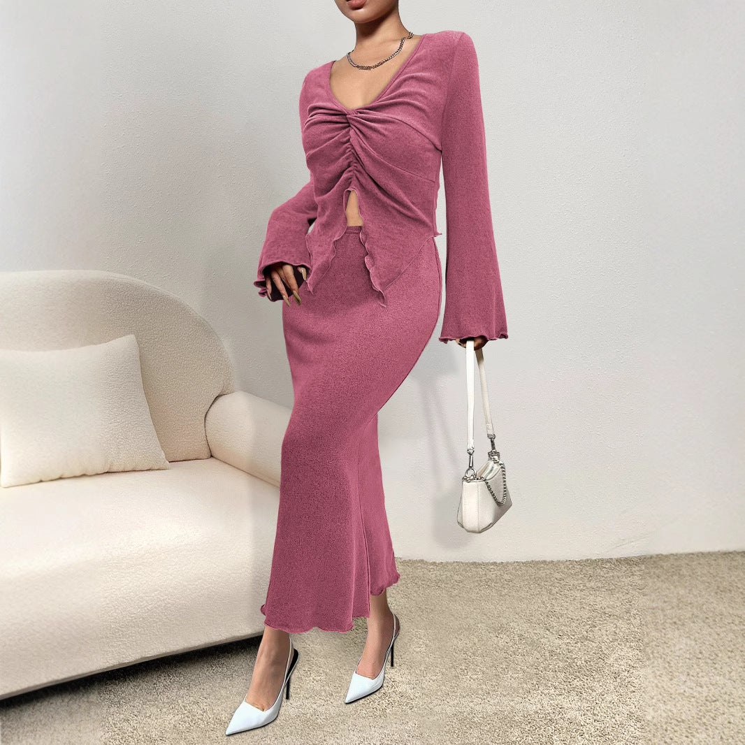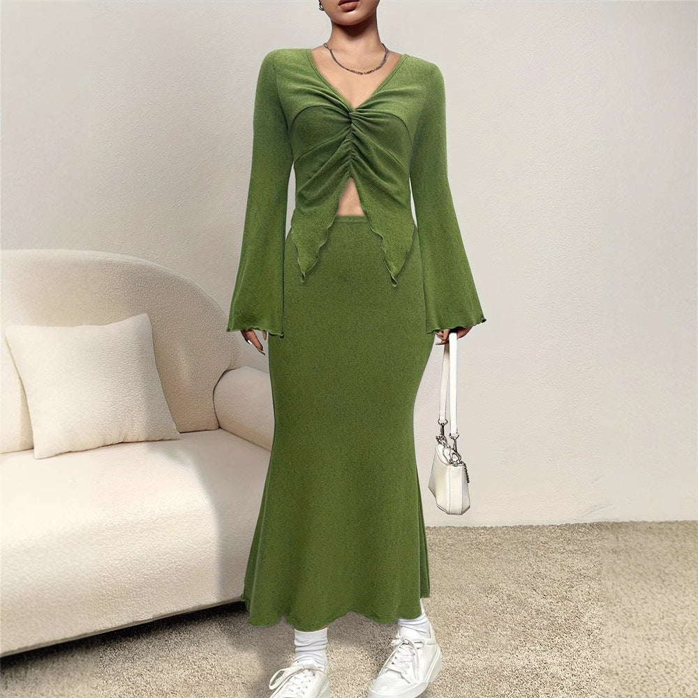 Kjol och Toppuppsättning för Kvinnor med Rüsch Detaljer