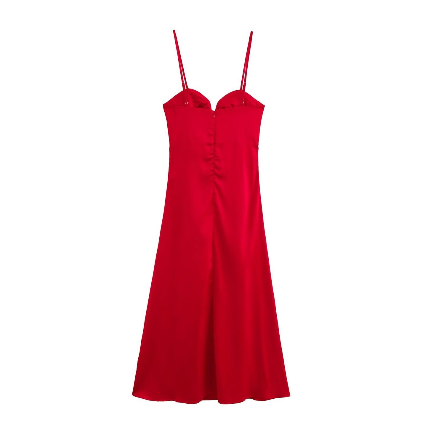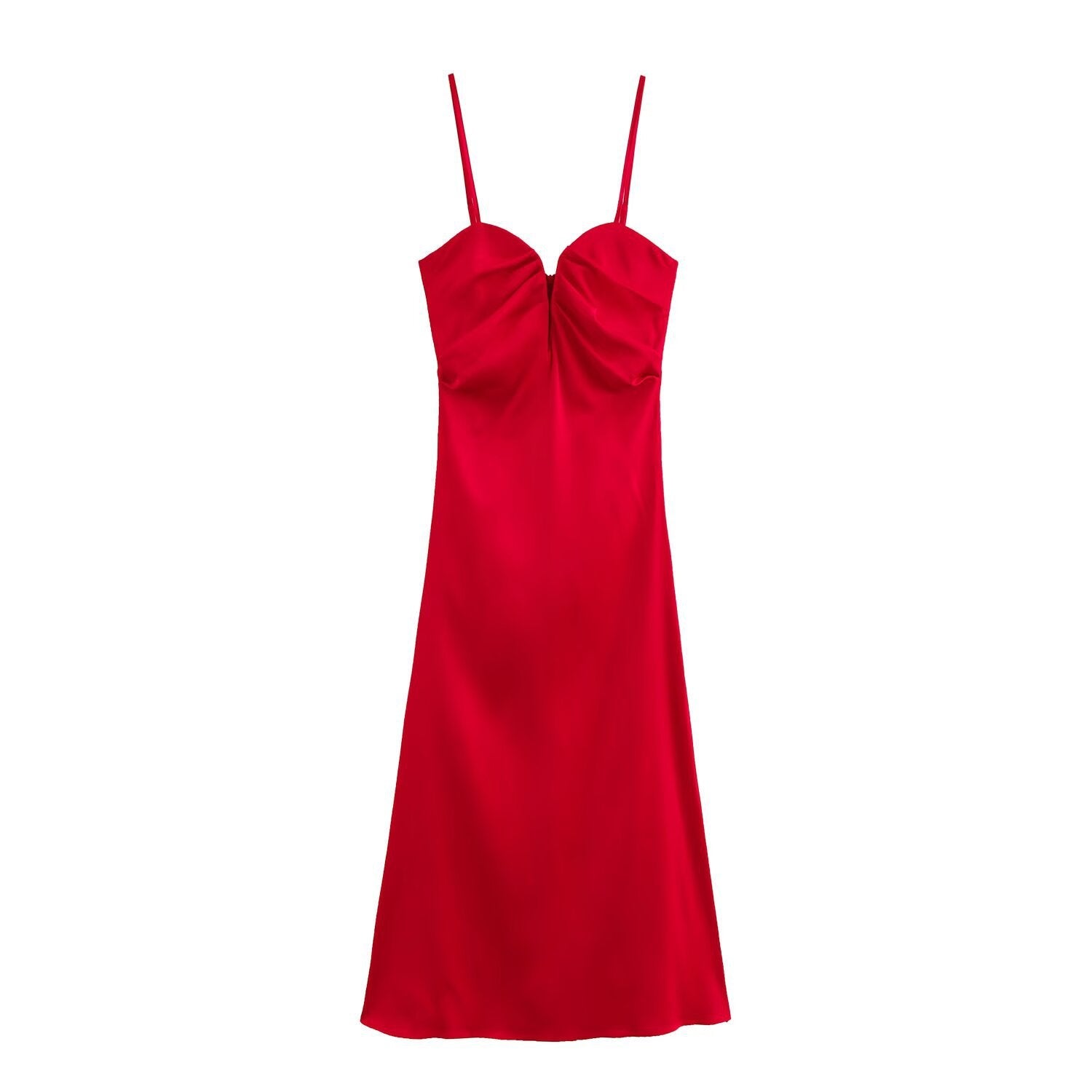 Kvinnors Midi Klänning Spaghetti Band Satin