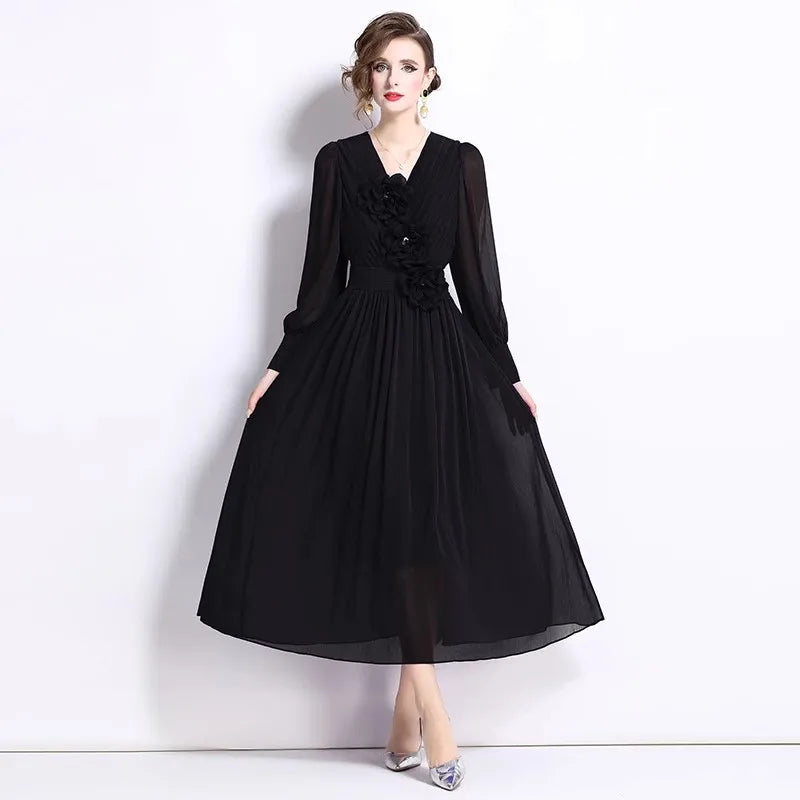 Upplev en ny nivå av stil och komfort med denna fantastiska MIDI-klänning. Den fördelaktiga V-ringningen och det eleganta snittet gör att du känner dig självsäker och vacker varje gång du bär den.