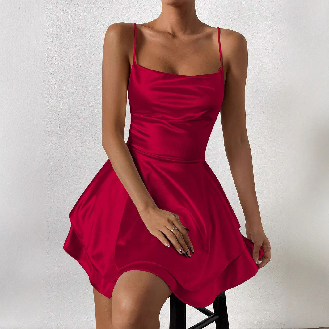 Kvinnors Mini Klänning Spaghetti Band Satin