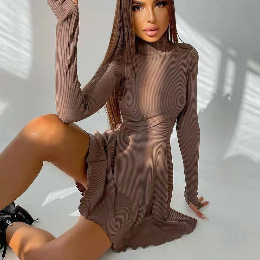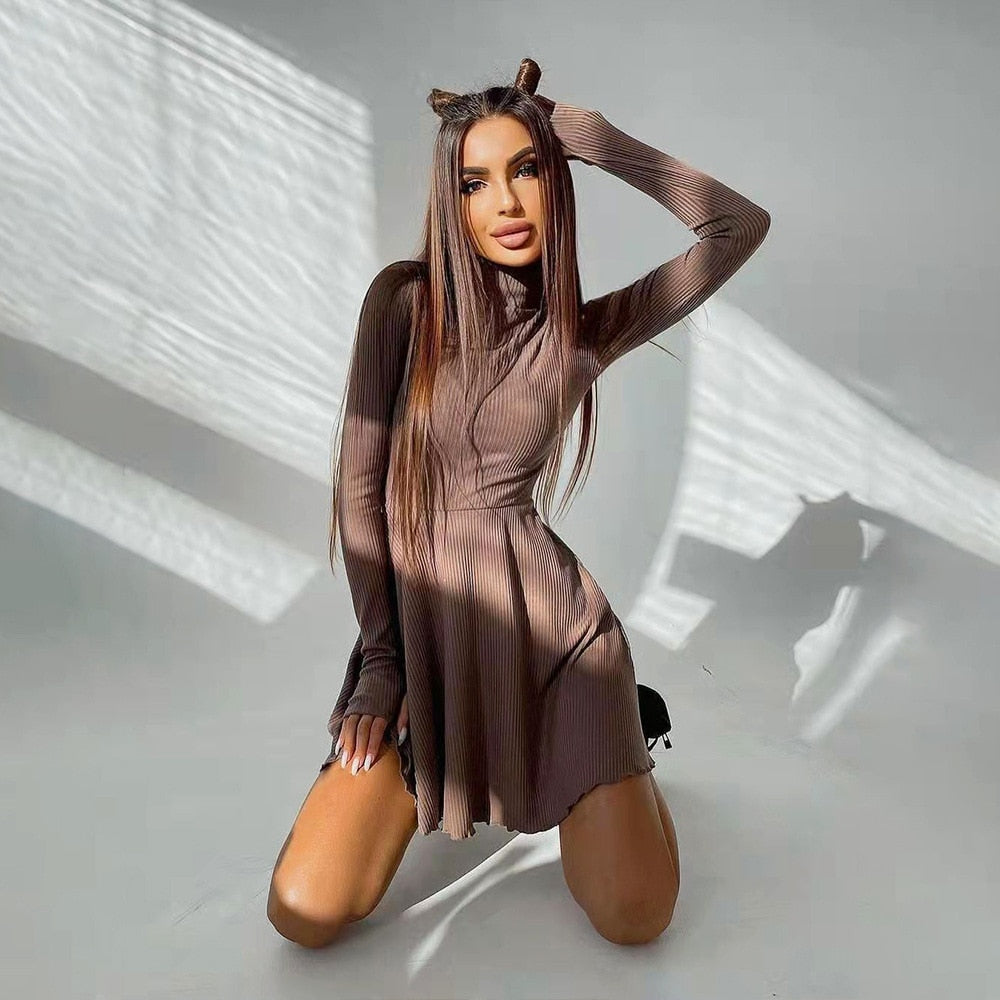Kvinnors Mini Klänning Turtleneck Syntetisk Spandex Polyester
