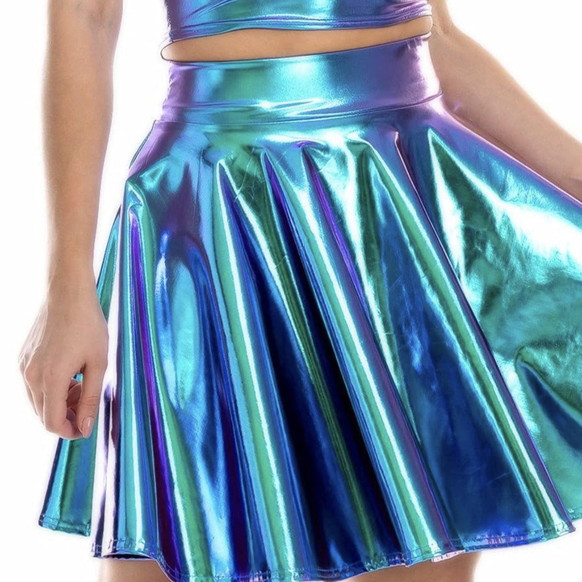 Upplev en fantastisk känsla av stil och självsäkerhet med denna minikjol i en bländande metallisk look. Den är perfekt för att fånga uppmärksamhet och skapa en unik outfit för varje tillfälle.