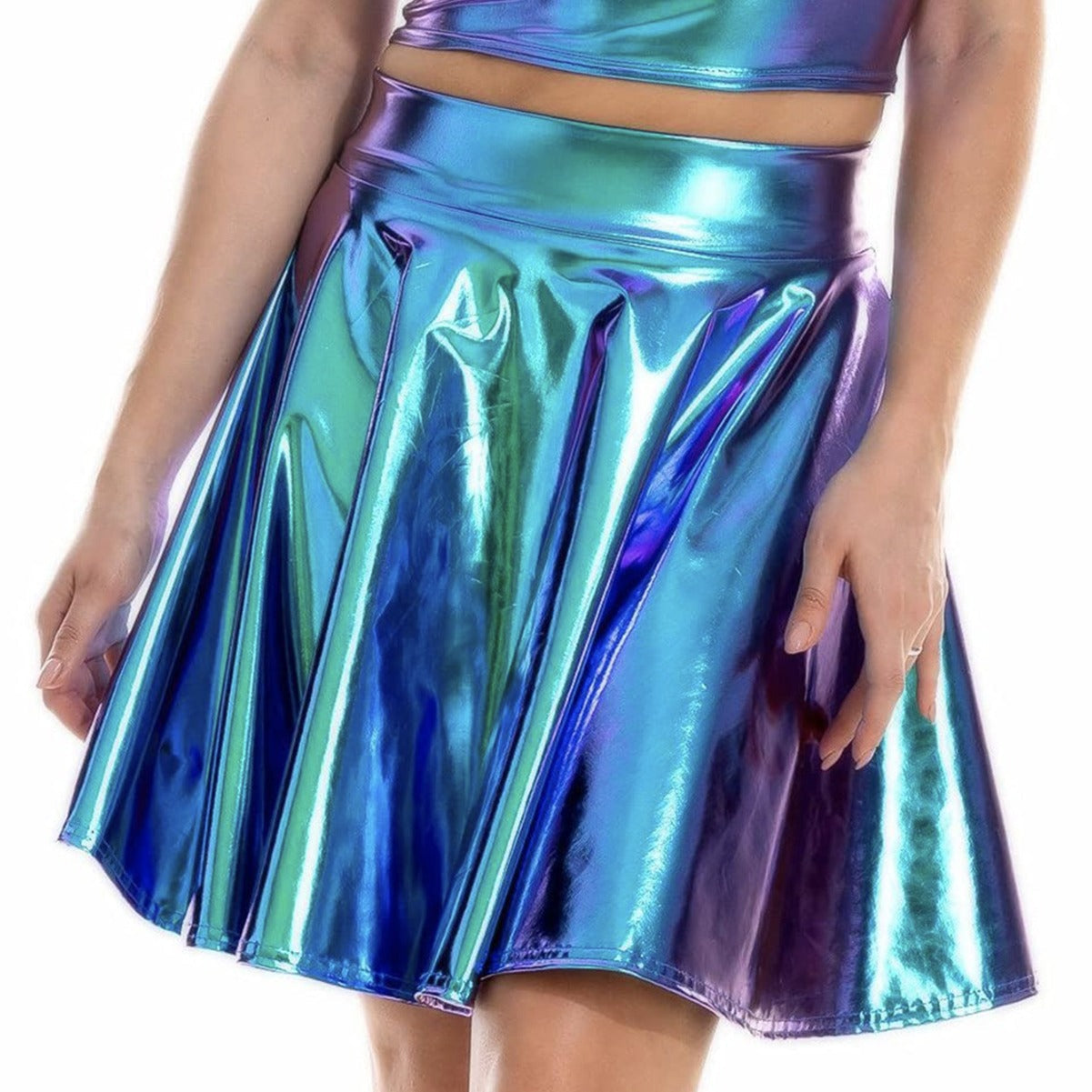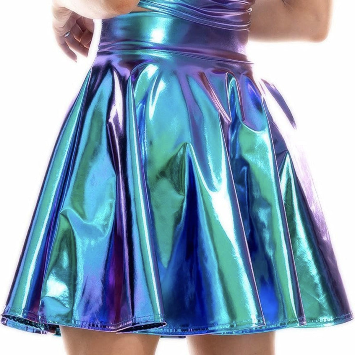 Denna minikjol kombinerar en modern design med en slående färg, vilket gör den till ett utmärkt val för fester, festivaler eller en stilfull dag i staden. Den glänsande ytan reflekterar ljuset på ett fantastiskt sätt och ger en elegant känsla.