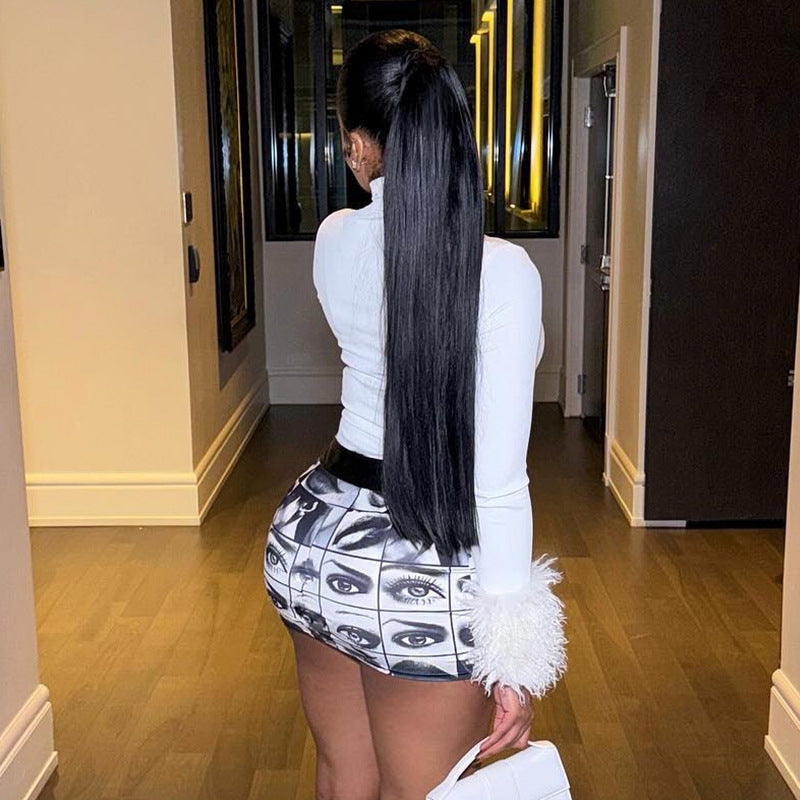 Upplev en unik stil med denna minikjol som verkligen sticker ut. Med sitt iögonfallande ögonmönster kommer du att känna dig självsäker och trendig varje gång du bär den.