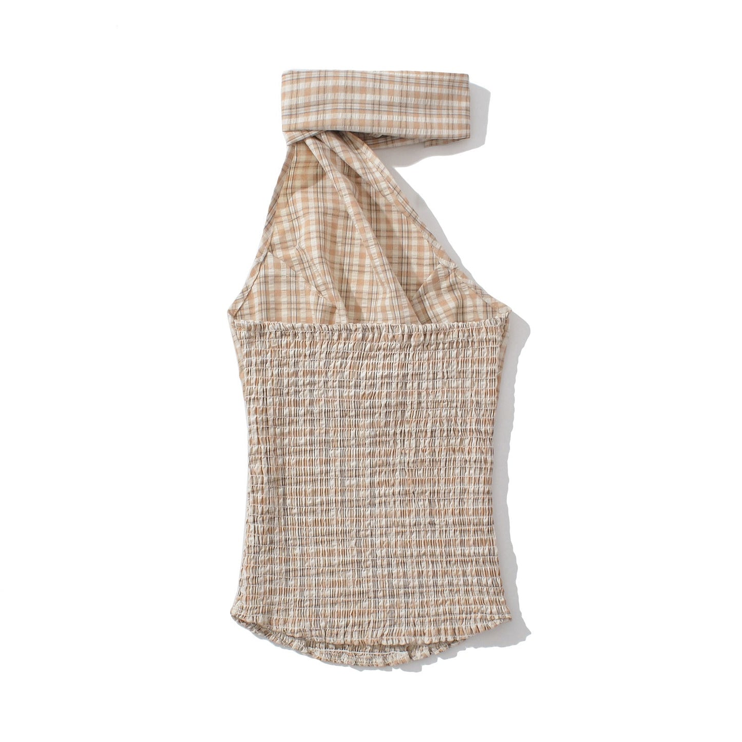 Upplev en ny nivå av stil med vår unika minikjol, som kombinerar en lekfull knut med en charmig rutig design. Denna kjol är perfekt för varma dagar och ger en lätt och luftig känsla till din garderob.