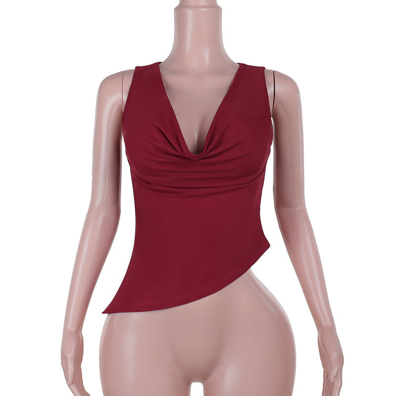 Med sitt unika asymmetriska snitt och flödande tyg erbjuder klänningen en modern look som passar både festliga och avslappnade tillfällen. Den djupa V-halsen och de vackert draperade detaljerna ger en sofistikerad touch som smickrar figuren.
