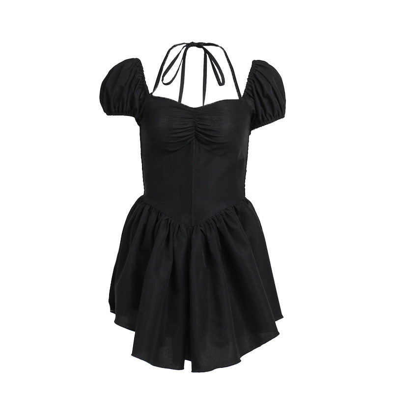 Kvinnors Miniklänning med Puffärmar och Elegant Hållare