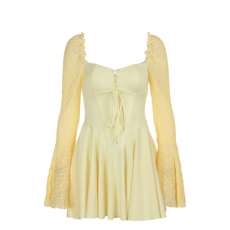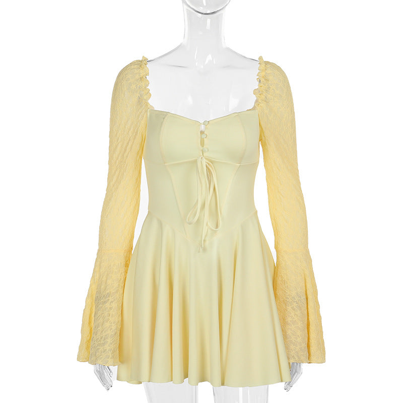 Kvinnors Miniklänning Puffärmar Spetsdetaljer Andningsbart Tyg