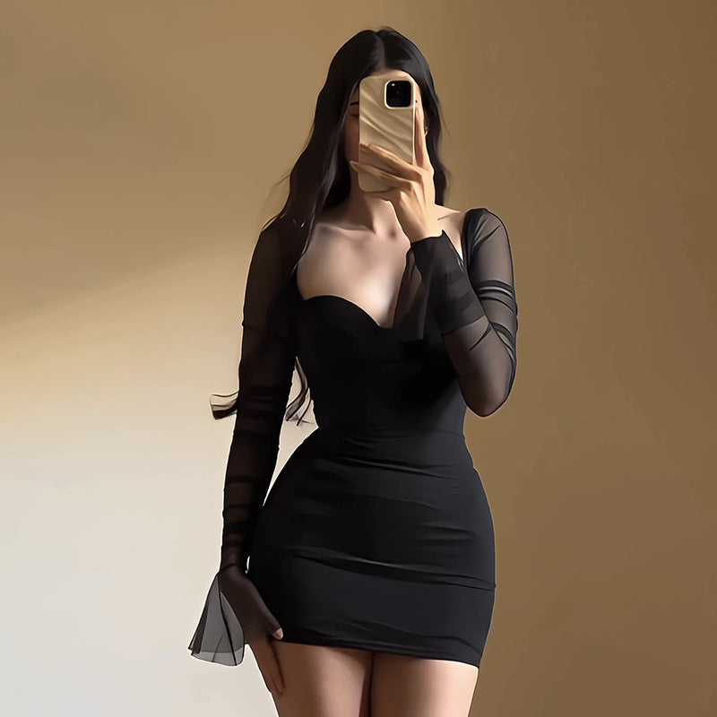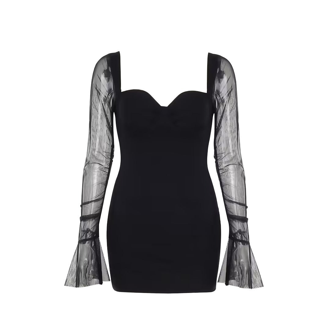Kvinnors Miniklänning med Transparenta Ärmar