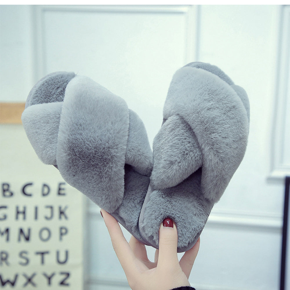 Upplev komfort och stil med dessa kvinnors mulor som har ett öppet tåområde och en korsad design. Perfekta för avkoppling hemma, ger de en känsla av lyx och elegans.