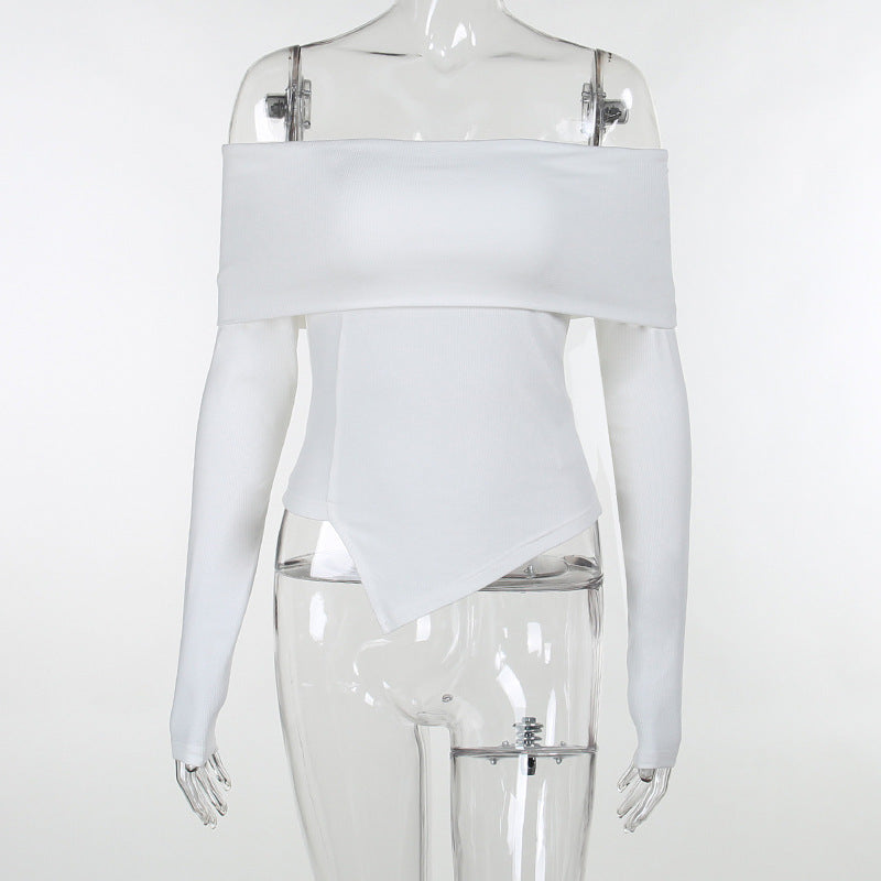 Kvinnors Off Shoulder Topp Asymmetrisk Hem Långa Ärmar Mjuk Elastisk Tyg