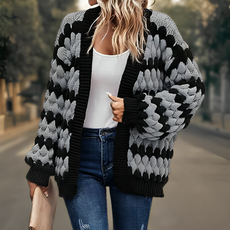 Denna kofta har en tidlös och anpassningsbar design som enkelt kan kombineras med jeans, leggings eller klänningar. Den lätta och luftiga känslan gör den till ett utmärkt val för svalare dagar och avslappnade kvällar.