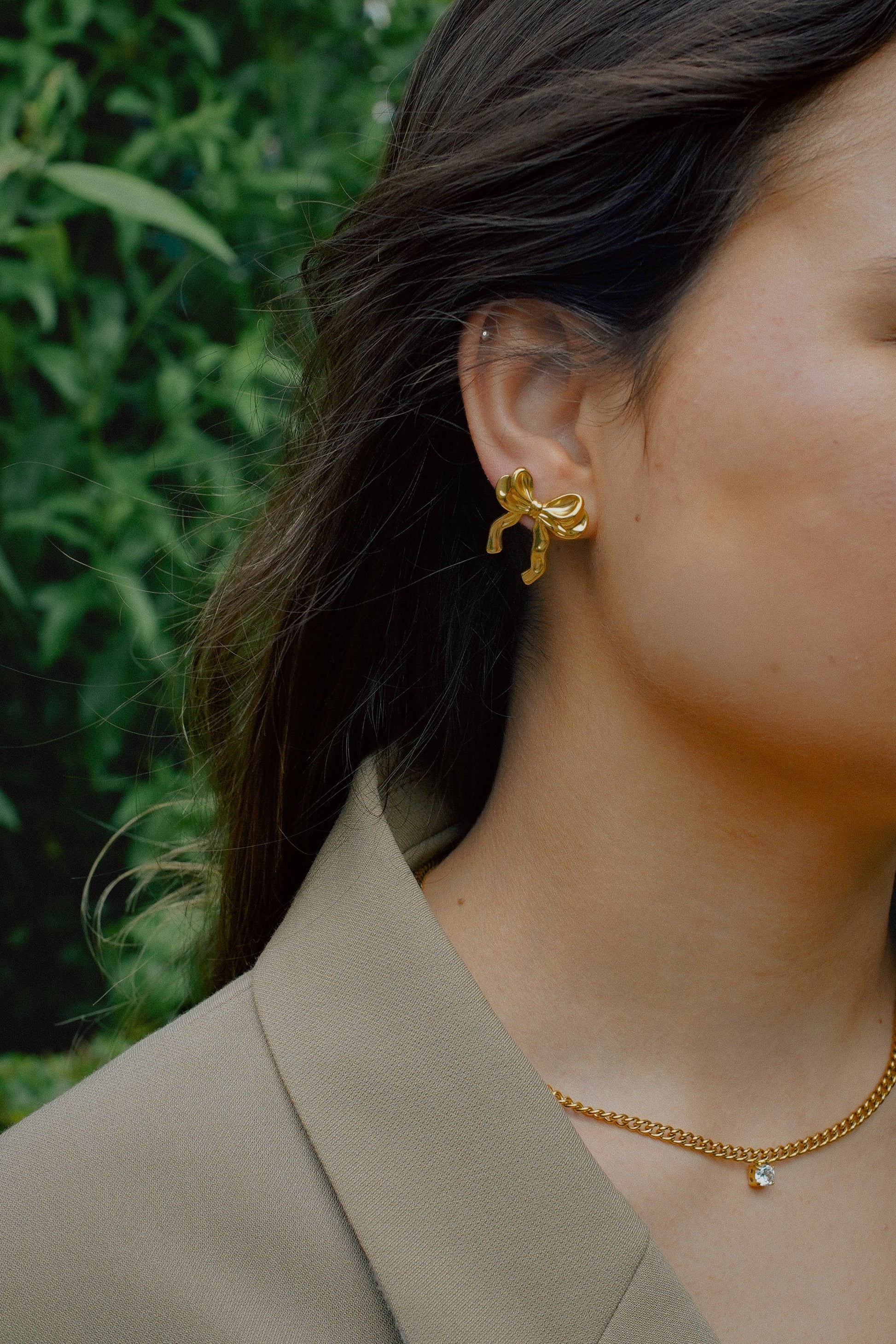 Dessa örhängen är skapade med ett tidlöst bågsmönster som framhäver en feminin och elegant stil. De är lätta och mångsidiga, vilket gör dem idealiska för både vardag och fest.