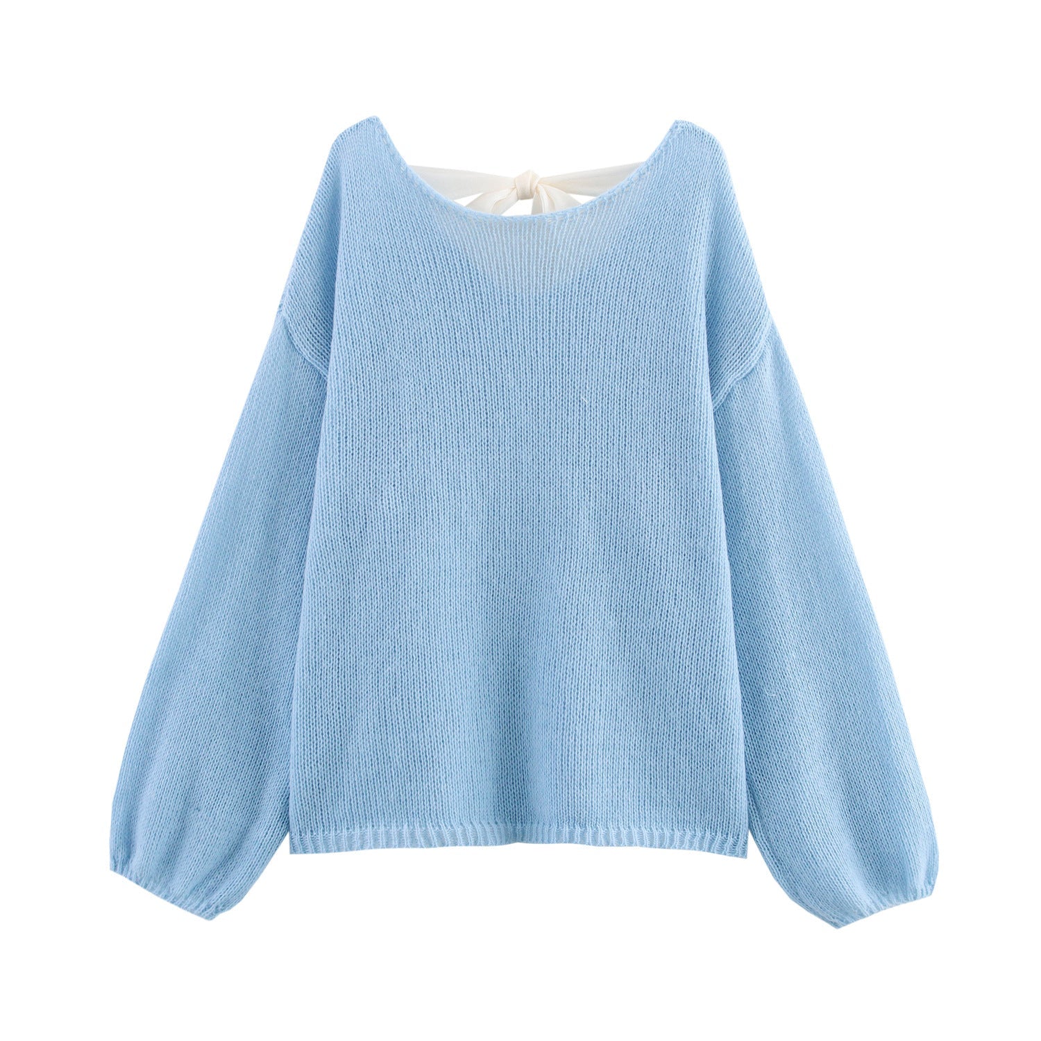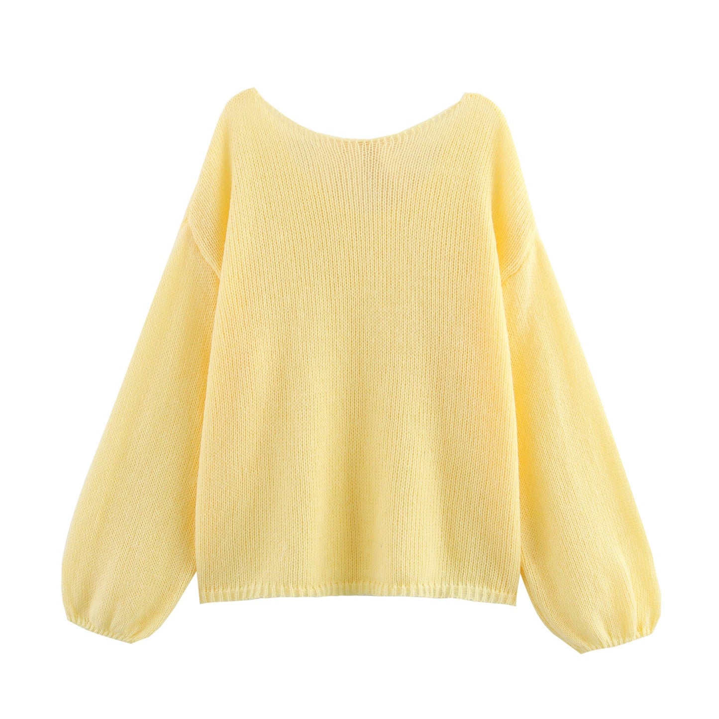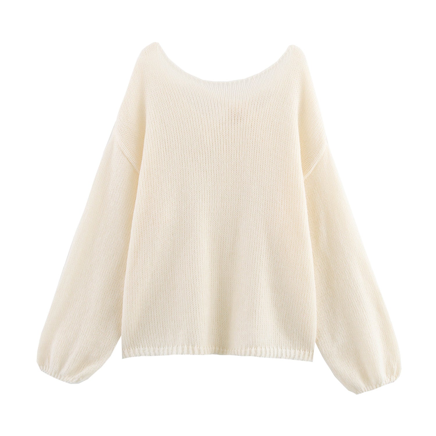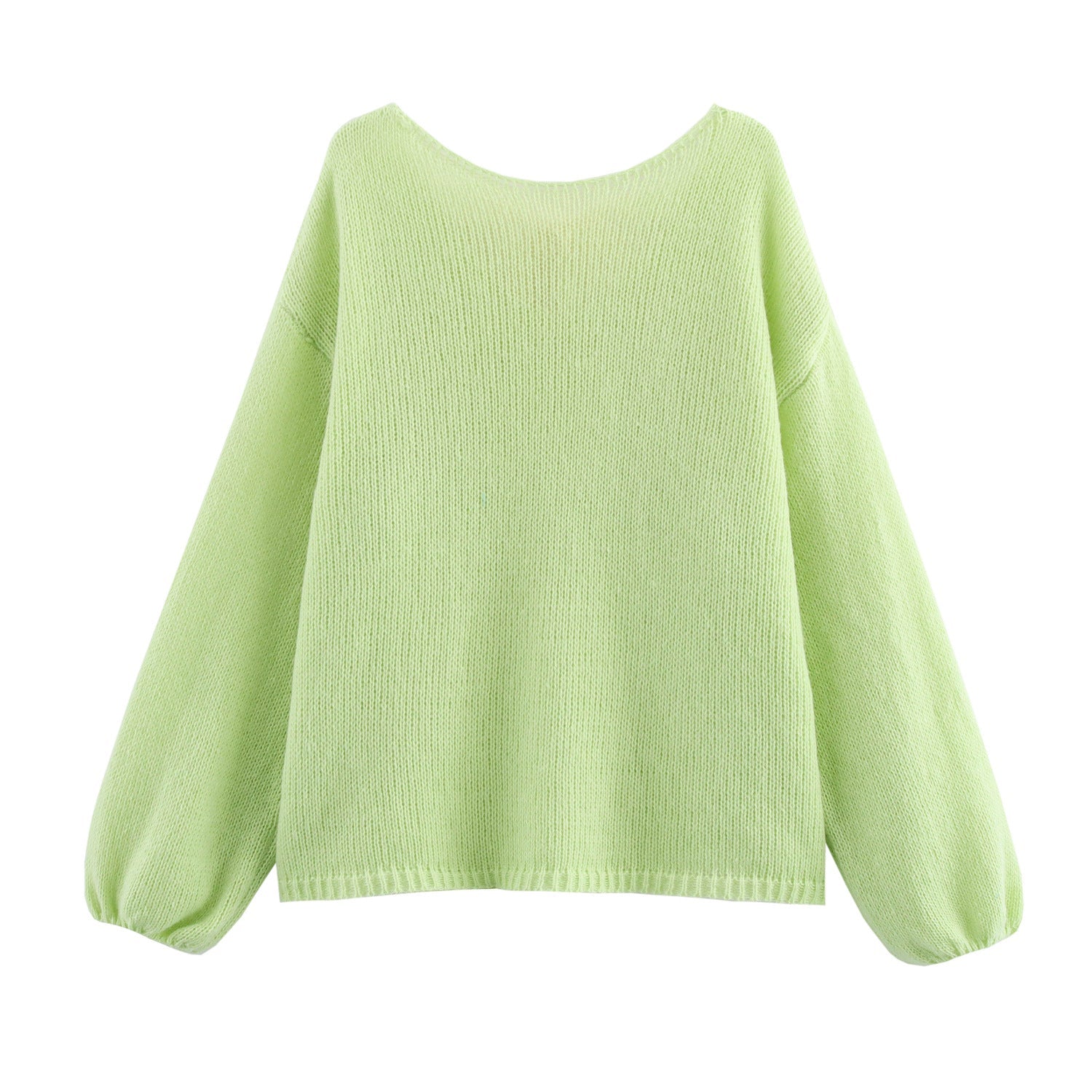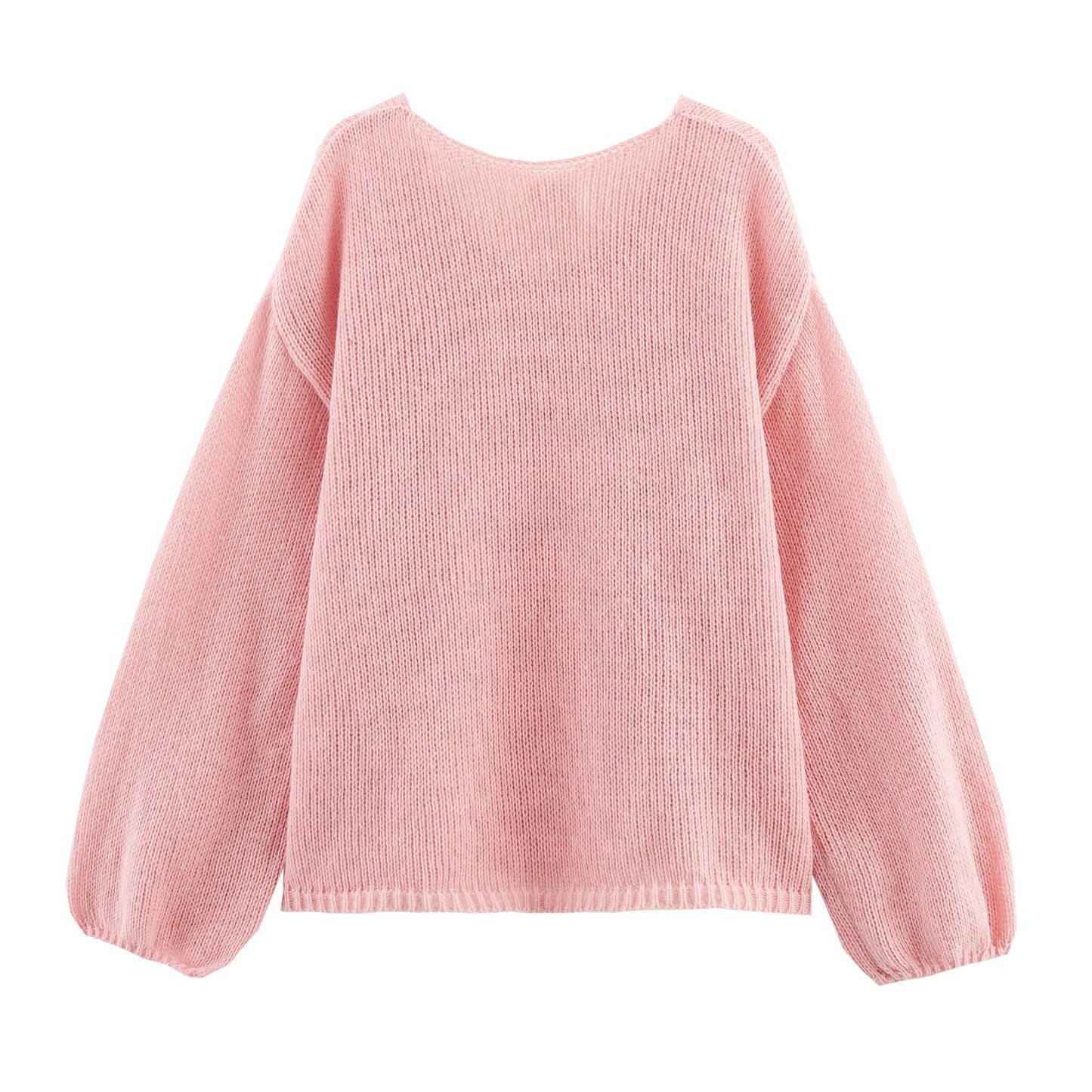 Överdimensionerad Sticktröja för Kvinnor med Ballongärmar