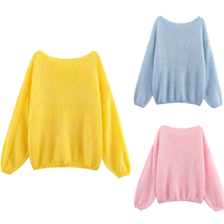 Kvinnors Överdimensionerad Sticktröja V-hals Mjuk Bomullsblandning