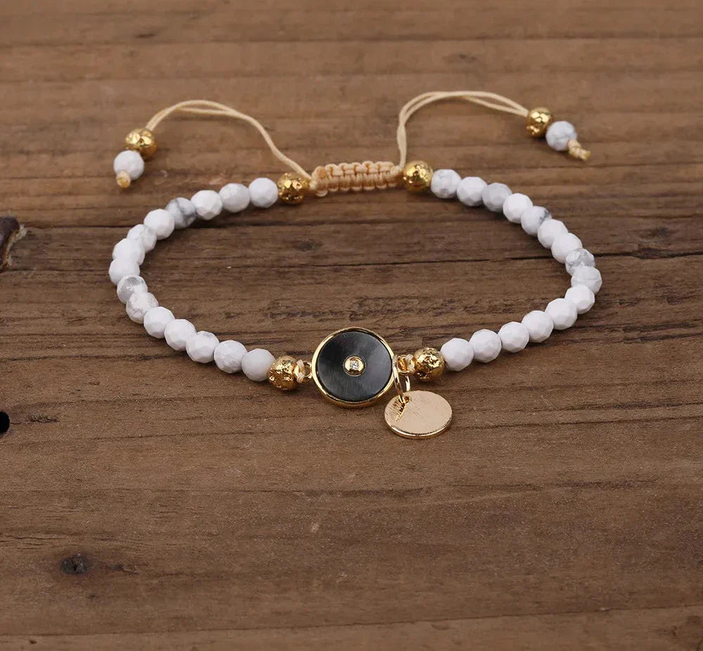 Designen av armbandet kombinerar eleganta stenpärlor med en charm som ger en unik och personlig touch. Perfekt för både vardag och fest, detta armband är en idealisk accessoar för att lyfta din stil.