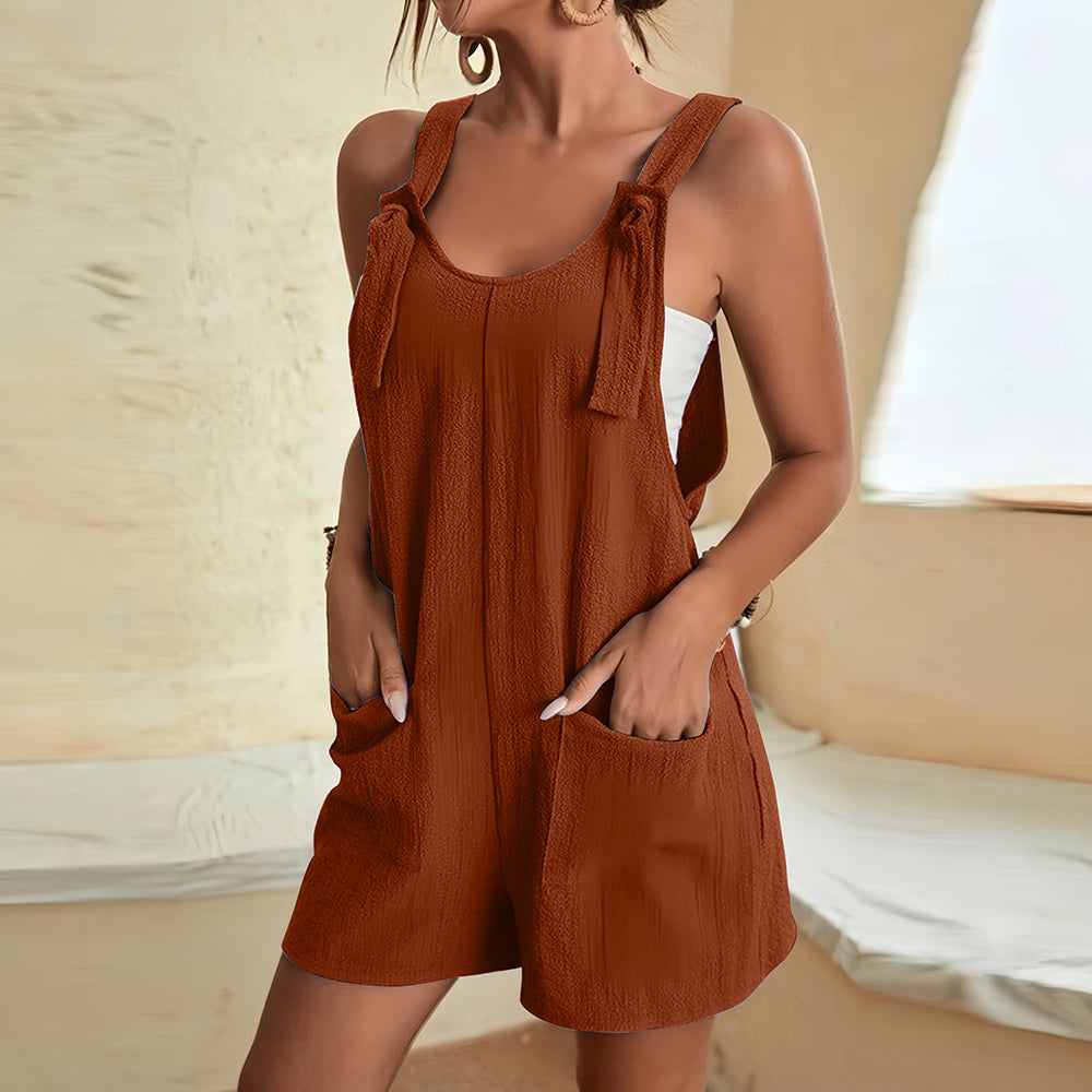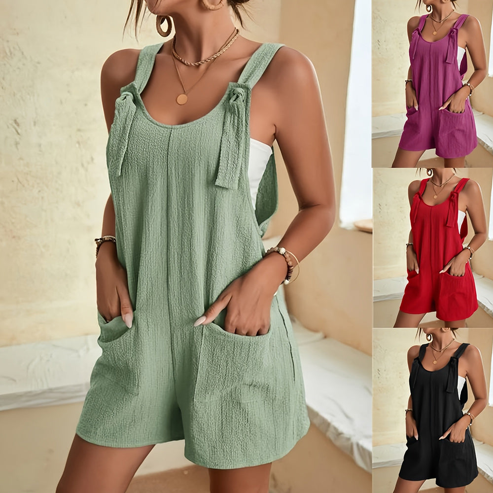 Byxorna har en modern design med hängslen som anpassar sig efter din kropp och ger en elegant silhuett. Den lösa passformen och det mjuka polyester materialet gör dem idealiska för varma dagar, samtidigt som de erbjuder en stilren look.