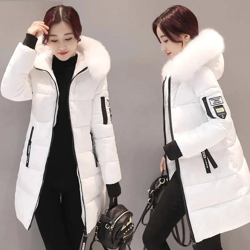 Kvinnors Quiltad Jacka Stor Huva Pälskrage Polyester