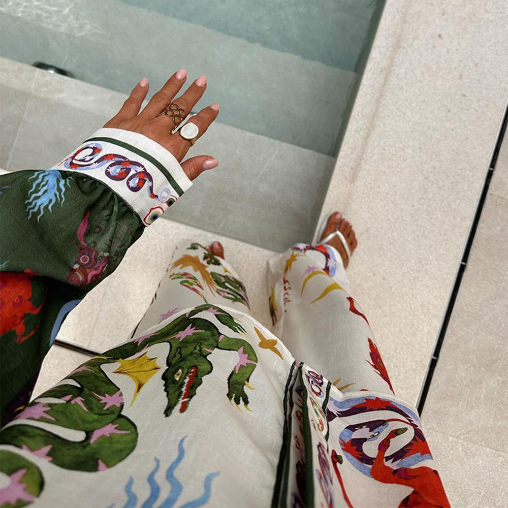 Avslappnad Sommaroutfit för Kvinnor med Tryckt Skjorta och Byxor