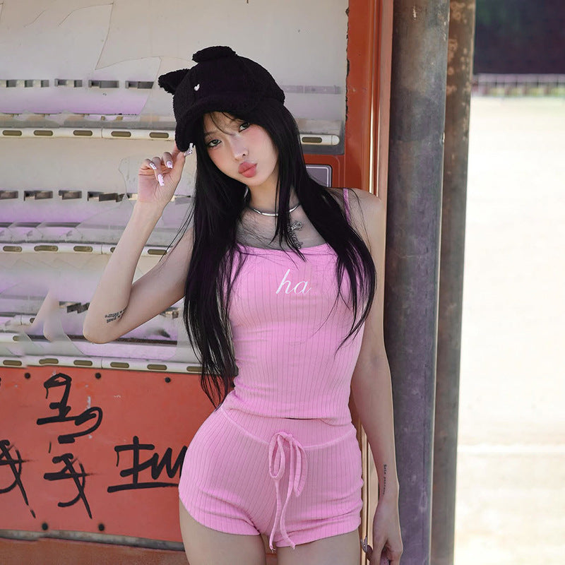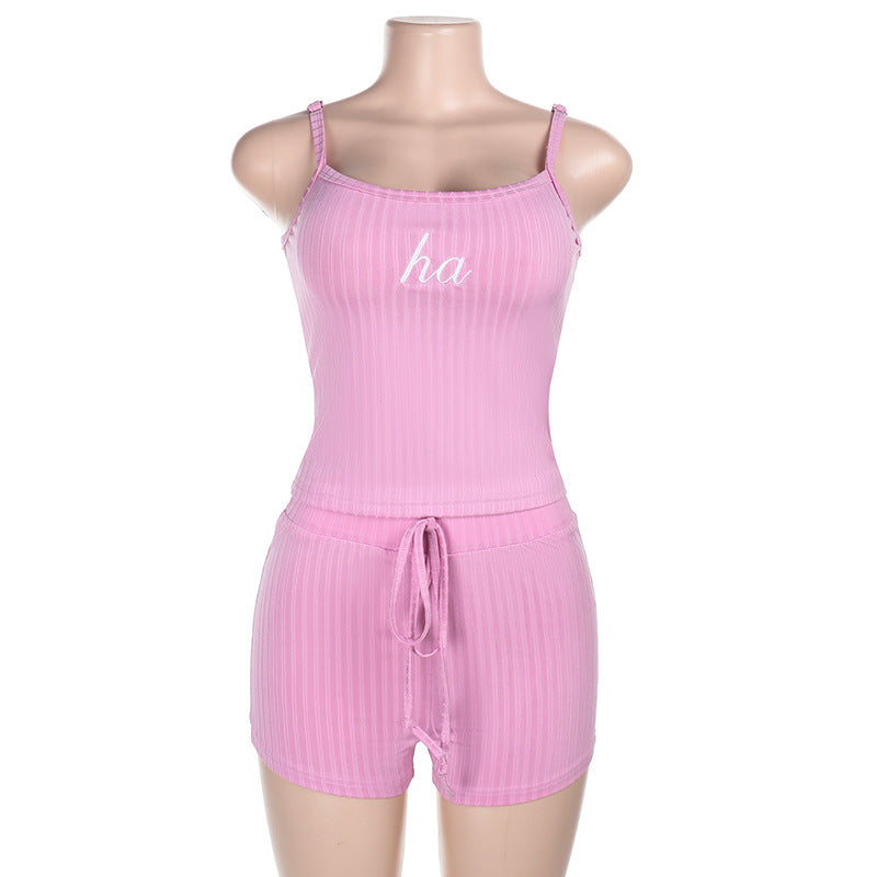Upplev friheten och komforten med vår sportiga tvådelade uppsättning, perfekt för både träning och avslappnade stunder. Den elastiska toppen och de korta shortsen ger en känsla av lätthet och stil, oavsett aktivitet.