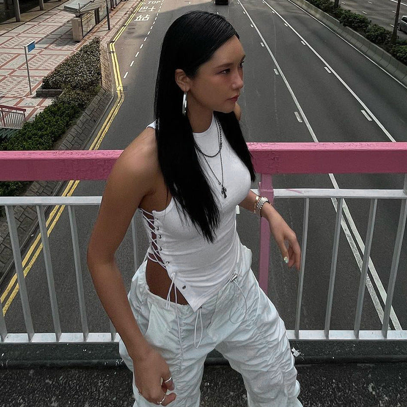 Upplev en perfekt kombination av stil och komfort med vår kvinnors topp med sidodesign. Denna topp är designad för att framhäva din silhuett och ge en känsla av elegans oavsett tillfälle.