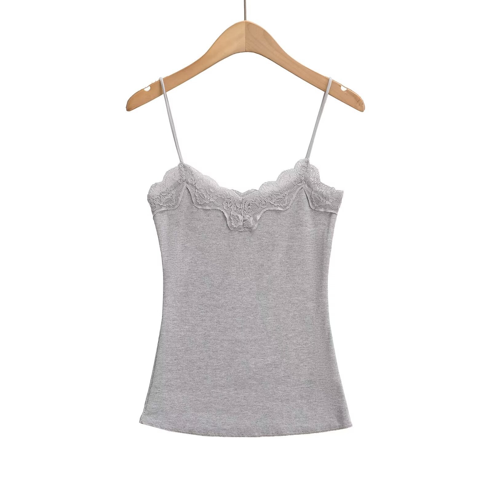 Kvinnors Topp V-ringning Spetsdetalj Mjukt Material
