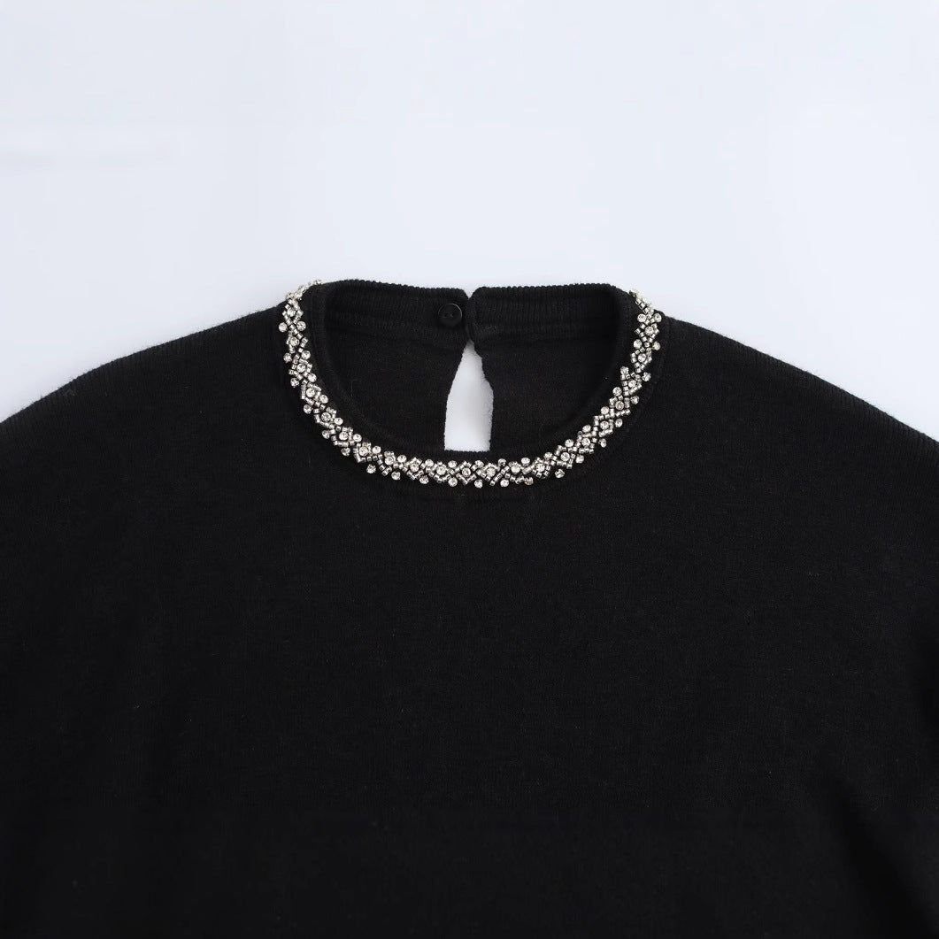 Tröjan har en utsökt kristallkrage som ger en glamorös touch, vilket gör den idealisk för både avslappnade och mer formella sammanhang. Den mjuka och andningsbara kvaliteten på tyget säkerställer att du alltid känner dig bekväm, oavsett om du är på kontoret eller på en middag.