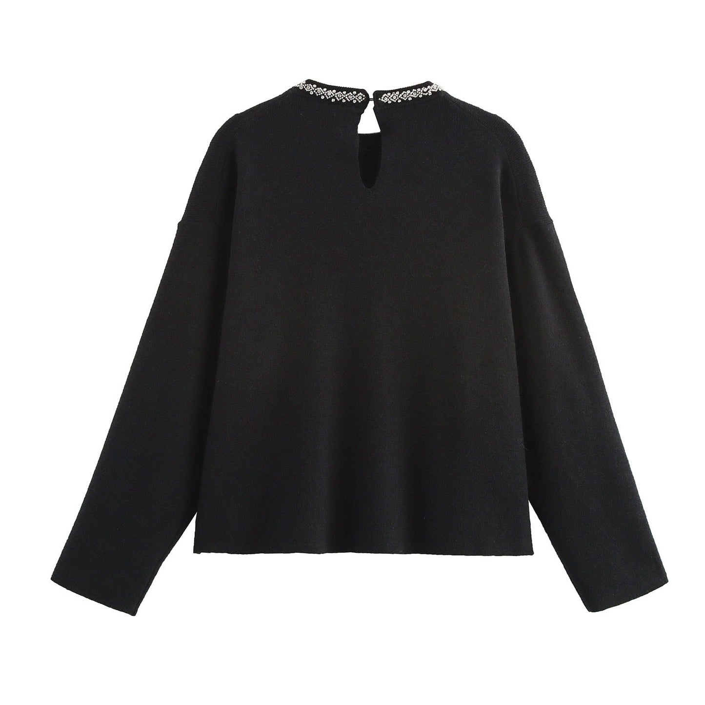 Kvinnors Tröja Elegant Mjuk Andningsbar Tyg med Kristallkrage