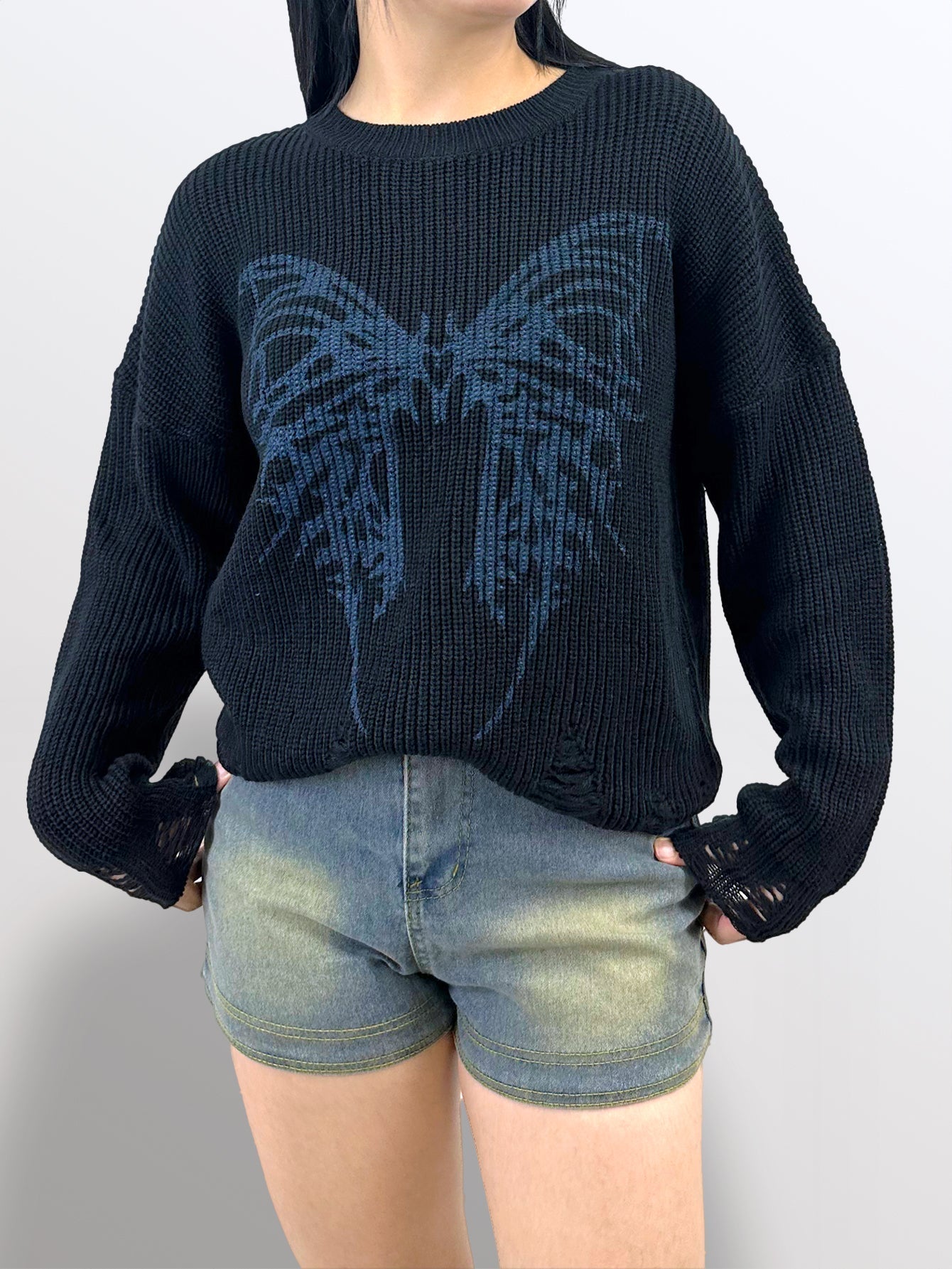Upplev naturens skönhet med denna tröja i fjärilsmönster. Den livliga designen ger din outfit en lekfull och fantasifull touch, perfekt för att uttrycka din personlighet.