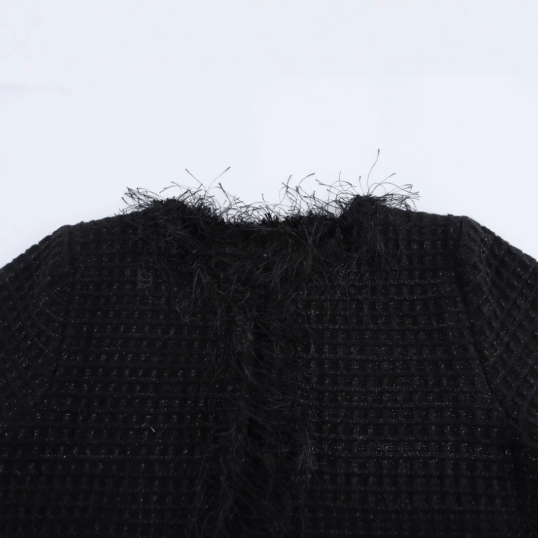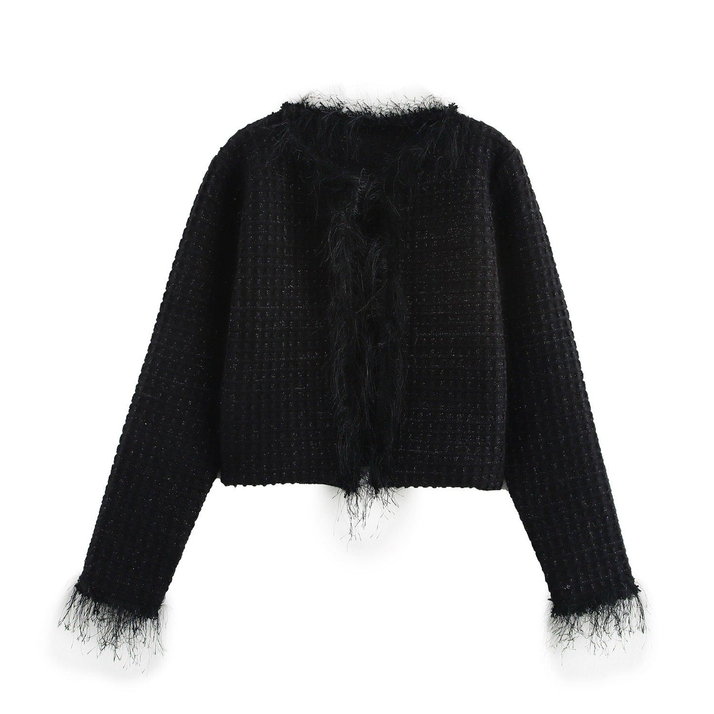 - Fluffiga accenter på ärmar och krage för en elegant finish.