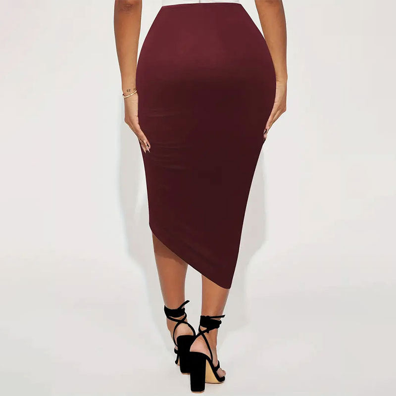 Denna kjol är utformad för att passa olika kroppsformer och framhäver silhuetten på ett fördelaktigt sätt. Rüsch-detaljerna tillför en feminin touch, medan den höga slitsen ger rörelsefrihet och en lekfull känsla.