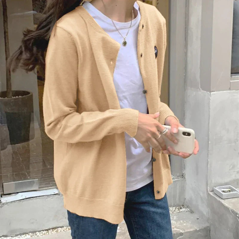 Denna långärmade cardigan är designad för att vara mångsidig och passar utmärkt för både avslappnade och mer uppklädda tillfällen. De praktiska knapparna fram ger en klassisk touch, vilket gör den lätt att kombinera med olika plagg.
