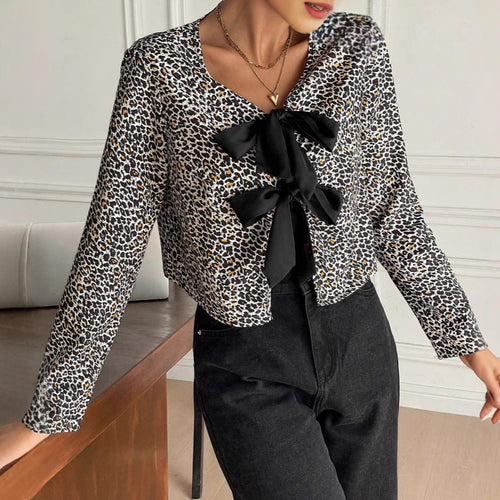 Lång Kofta Dam Leopardmönster Polyester Cardigan