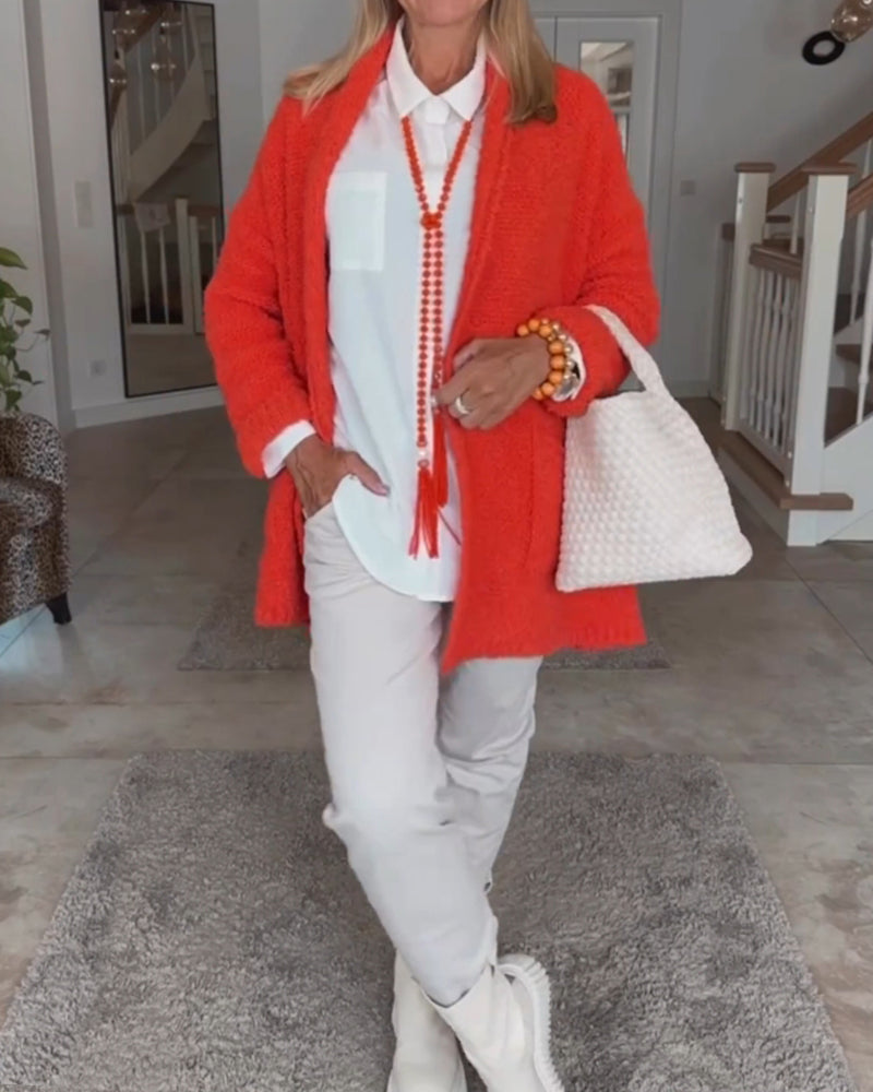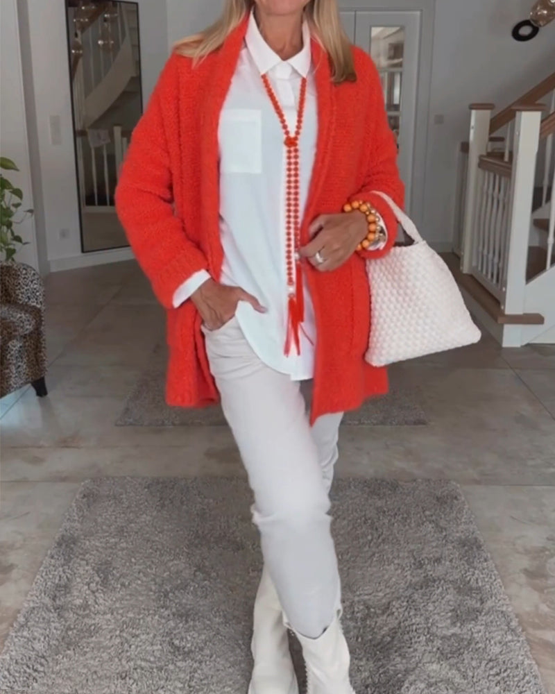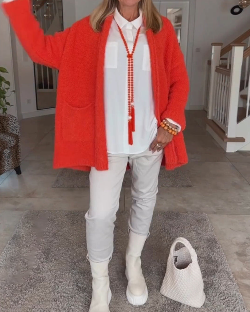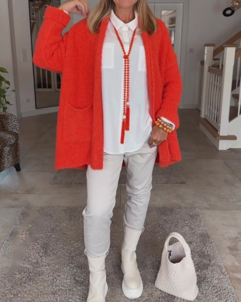 Lång Kofta Dam Med Fickor Akryl Polyester