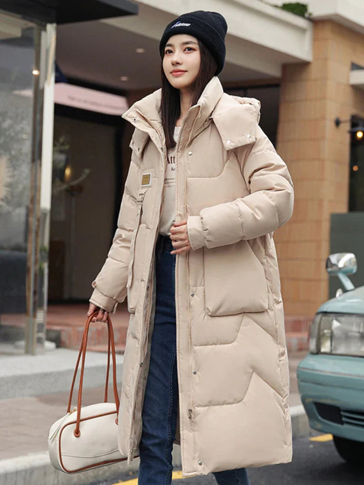 Lång Vinterjacka Dam Vadderad Quiltad Polyester för Kalla Dagar
