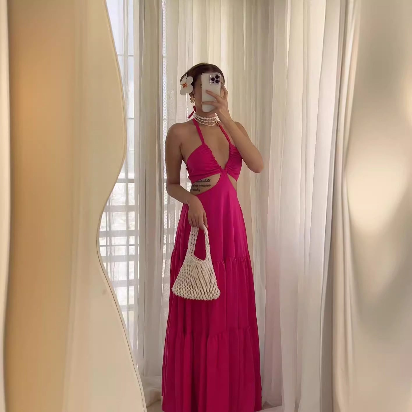 Upplev friheten och glädjen av att bära denna eleganta långklänning, perfekt för en dag på stranden eller en avslappnad sommarkväll. Klänningen ger en känsla av lätthet och stil, vilket gör att du alltid ser fantastisk ut.